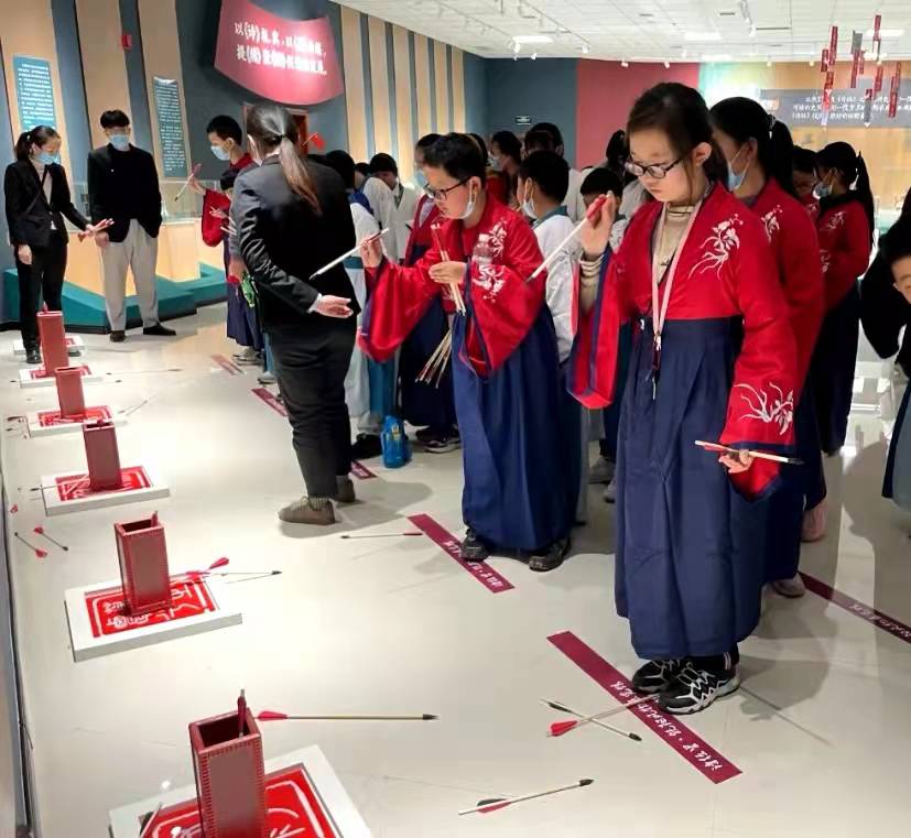 活动中,学生们走进诗经里·饶阳风物展览馆,在讲解员的带领下穿越历史——着汉服身临其境感受诗经之美,听诗经中的风物及故事,认识诗经、了解诗经。他们动手体验投壶,在互动中感受古代游戏的乐趣。