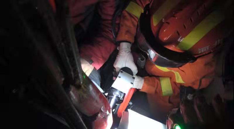救援人员到达现场后,指挥员立即下令救援。救援人员利用液压破拆工具组对变形车体进行破拆、扩充,创造救人条件。救援过程中,消防救援人员一边安抚被困人员情绪,一边争分夺秒加快处置。经过15分钟的紧张救援,19时12分,被困人员被成功救出。