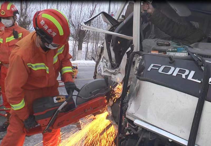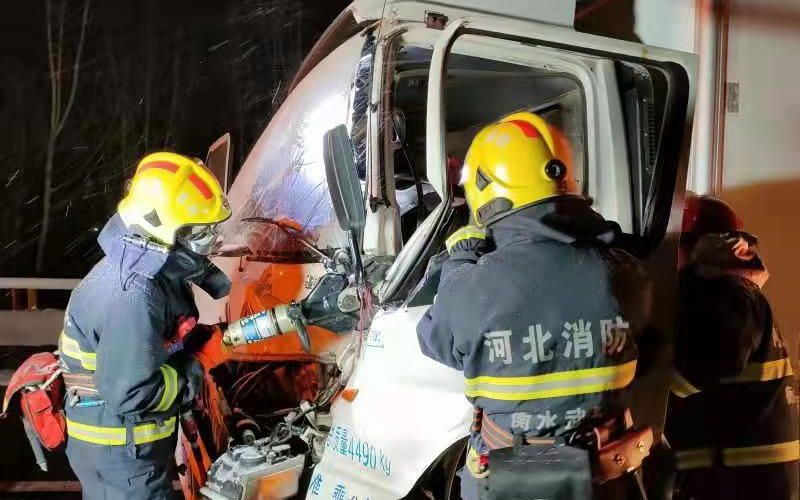 1月22日18时14分,衡水市消防救援支队枣强县建设北路消防救援站接到报警称:位于枣强县马屯镇丁柳林村东的公路上一辆厢货车因雪天路滑撞向旁边的树,车内有1名人员被困。接到报警后,枣强县建设北路消防救援站迅速出动一辆抢险救援消防车和一辆城市主战消防车,12名消防救援人员赶赴现场处置。