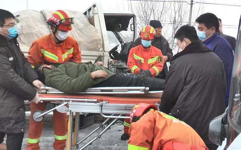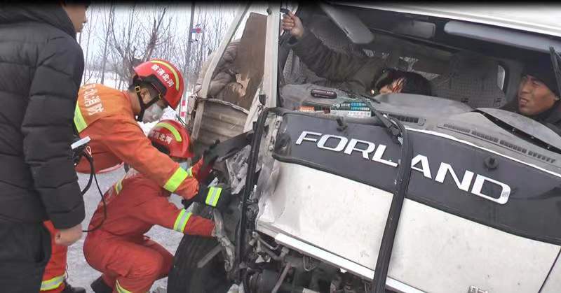 1月24日早6时58分,阜城消防接到报警称,位于阜城县县道951梁家村路段发生车祸,致使两人被困。接到报警后,阜城县富强东路消防救援站立即出动2辆消防车、7名消防救援人员赶赴现场。