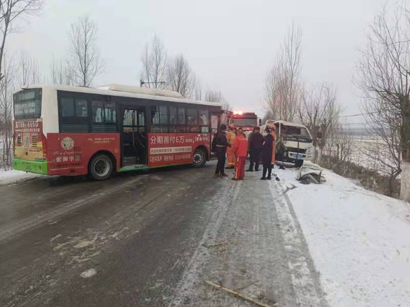 7时20分,救援力量到达现场,经现场勘查了解,由于路面湿滑,导致一辆小货车与公交车相撞,小货车内有两人被困,司机在救援人员到达之前已被现场群众救出,副驾驶室位置仍有一人被困。消防人员在现场看到,副驾驶室位置车门及A柱下方车头处严重变形,被困人员双腿被牢牢卡住,无法动弹,脸部也被破碎玻璃划伤,情绪非常激动,急需救援。