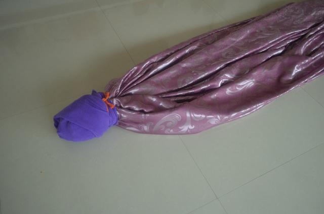 第一步,先将需要清洗的窗帘拆下来,并且准备一条毛巾和一根绳子。