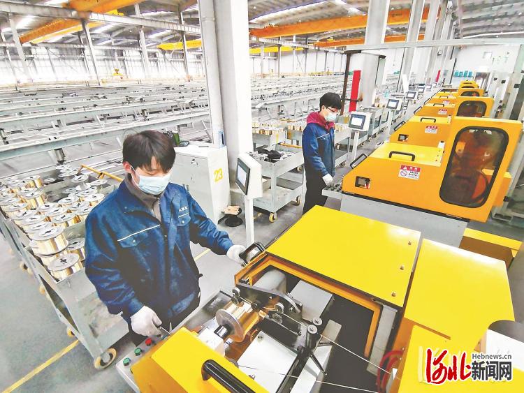 日前,在景县经济开发区衡德工业园的卓凡液压科技有限公司车间内,工人在进行高压胶管钢丝合股作业。