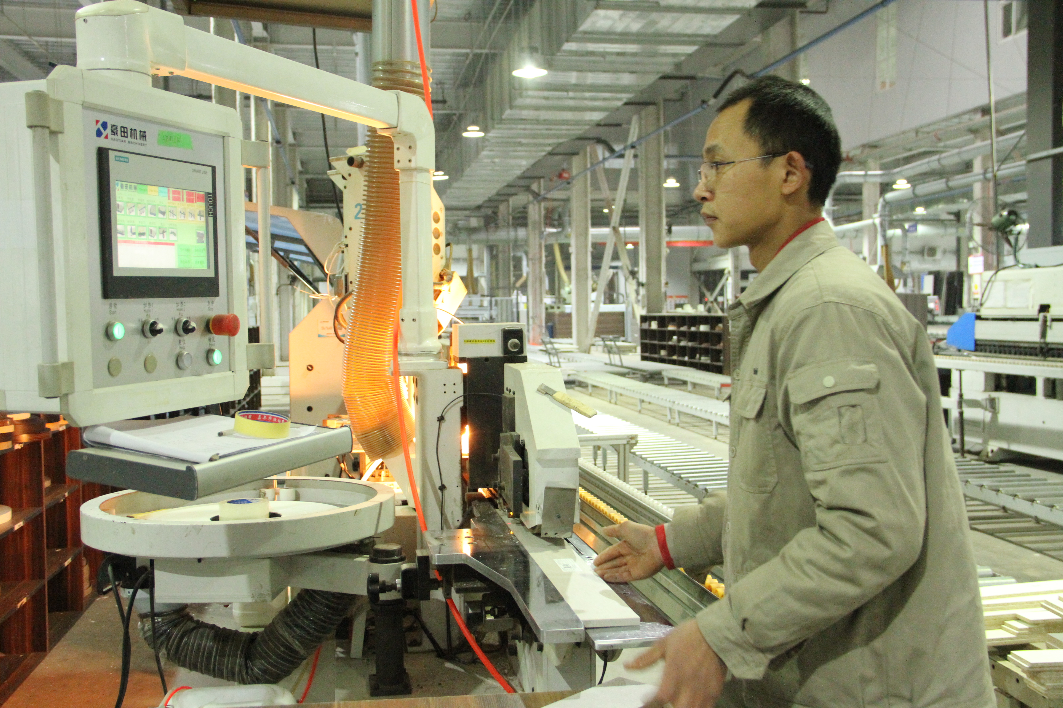 1月21日,博洛尼智能科技(衡水)有限公司员工在车间内进行柜体板打孔和门板进行最终检验。 高占峰 任玉静摄