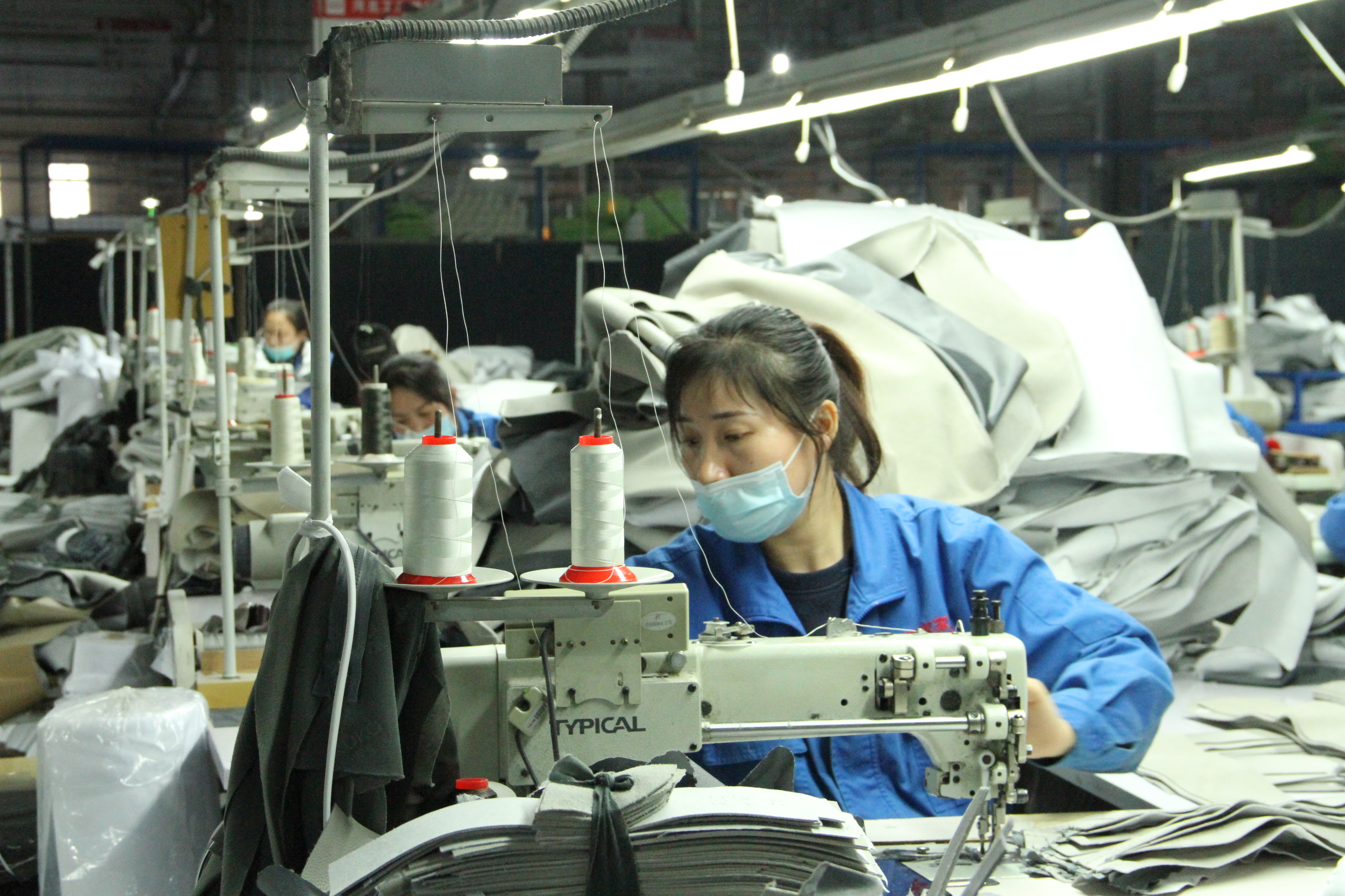 1月21日,顾家家居河北有限公司员工在裁缝车间工作。 高占峰 张佩佳摄