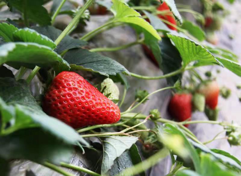 陈二龙采用生物防治法与物理防治法防治草莓病虫害,不喷化学农药,草莓可现摘现吃。他说:“每年9月份种植,到了元旦,草莓一茬接一茬成熟,春节前后进入高产期,草莓的采摘期将会持续到5月份。”