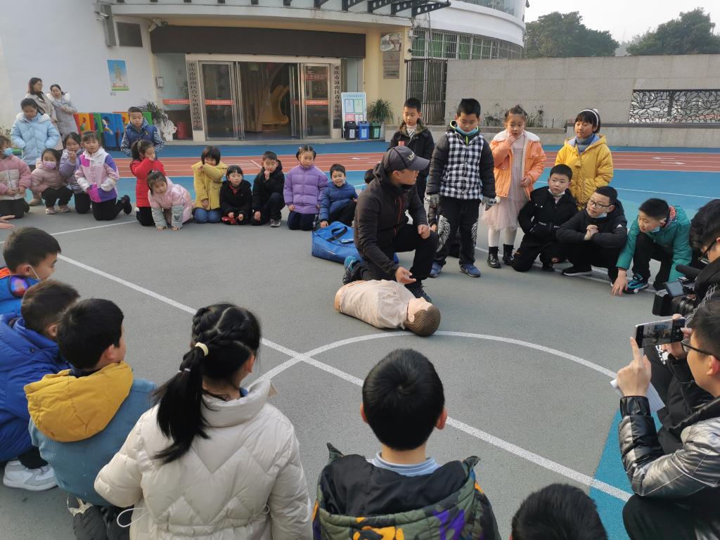 潼南区“七彩假期”寒假公益托管班的孩子们在学习安全救护知识。(受访者供图)
