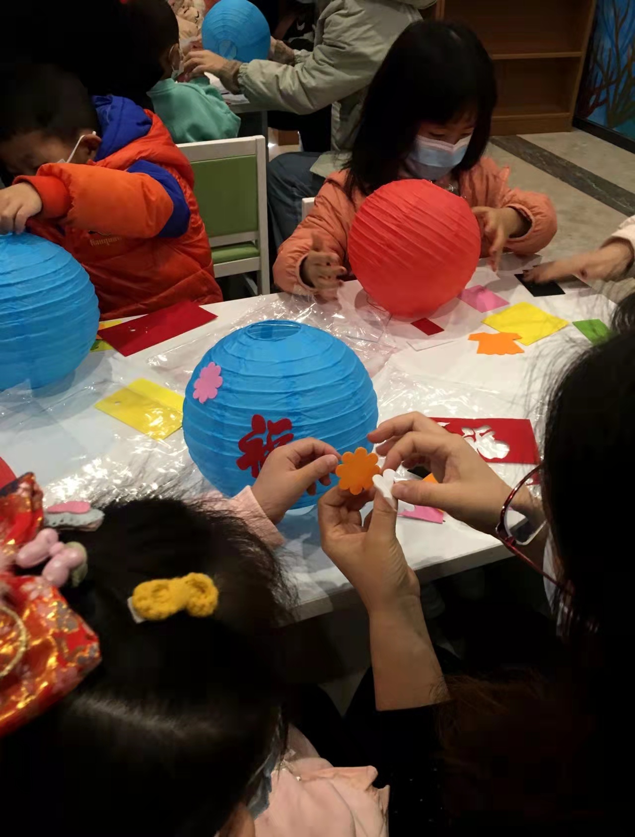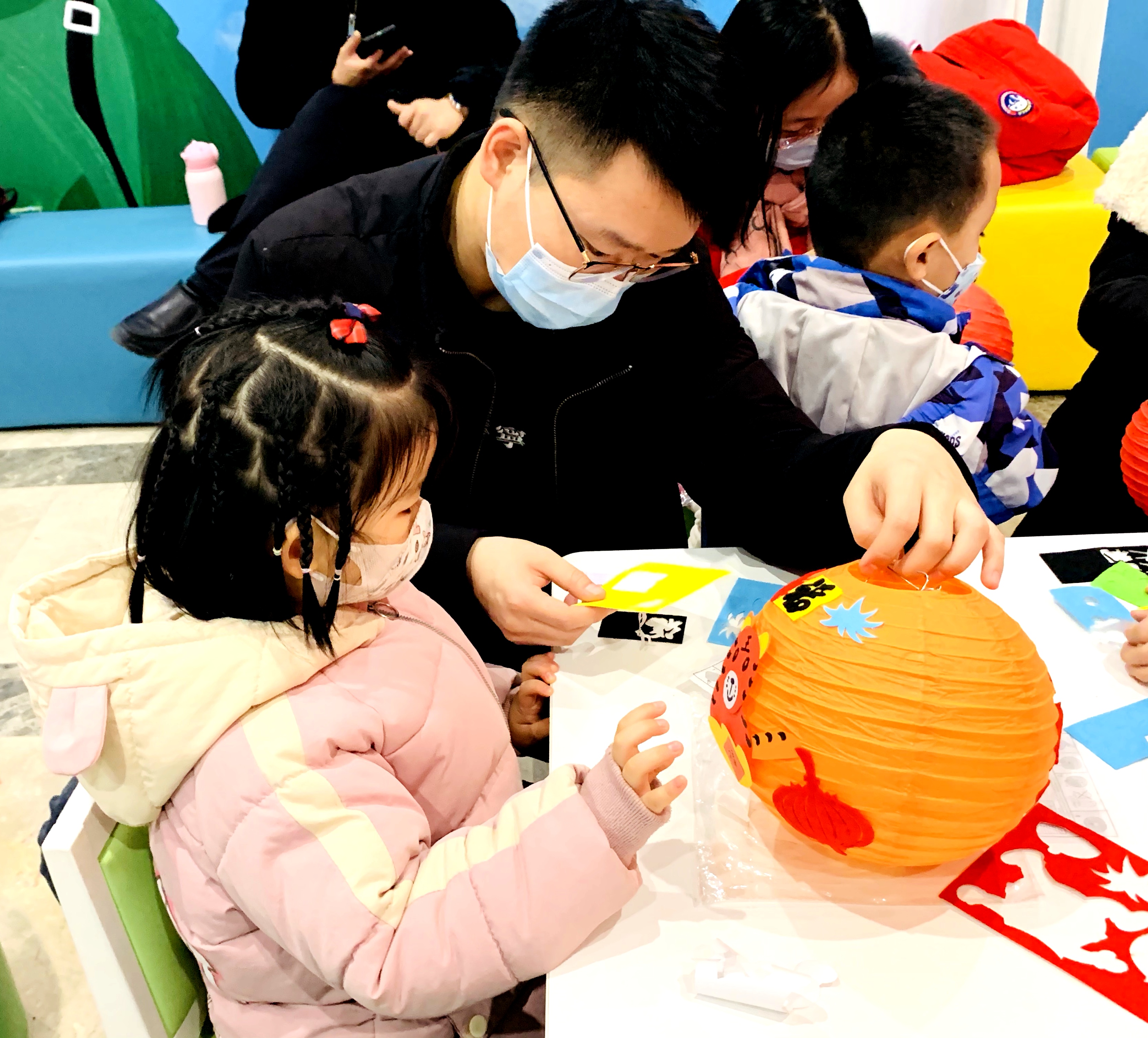 “元宵节当天的风俗很多,比如吃汤圆、赏花灯、猜灯谜等等,而咱们今天要体验的是花灯的制作流程……”活动中,市图书馆的老师首先为大家介绍了元宵节的由来,随后,每个亲子家庭都领到了DIY灯笼的制作材料,并认真聆听老师讲解灯笼的安装步骤。