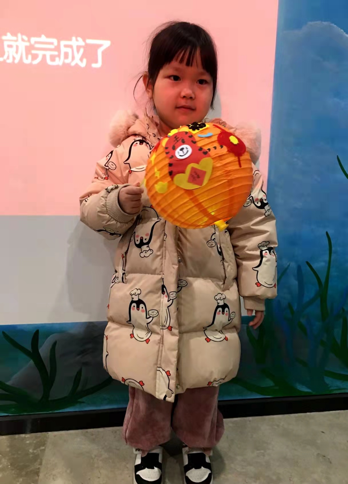 拿到材料包的孩子们一个个兴致盎然,在老师和家长指导和协助下,小心翼翼撑开灯笼,先将铁丝放进去,再将铁丝凸起部分卡进铁环固定,然后揭开带有装饰图案的贴纸,挑选自己喜欢的一个个粘贴在灯笼上,最后把七彩灯卡到灯笼底部的铁丝上,再把灯笼挂在提杆上……一只只漂亮的手工灯笼就做好了!这些圆墩墩的小灯笼五颜六色,上面有可爱的小老虎等卡通画,有“福”字等祝福语,还有小花瓣等装饰画,充满了喜庆。看着自己动手制作的元宵花灯,每个孩子的脸上都乐开了花。