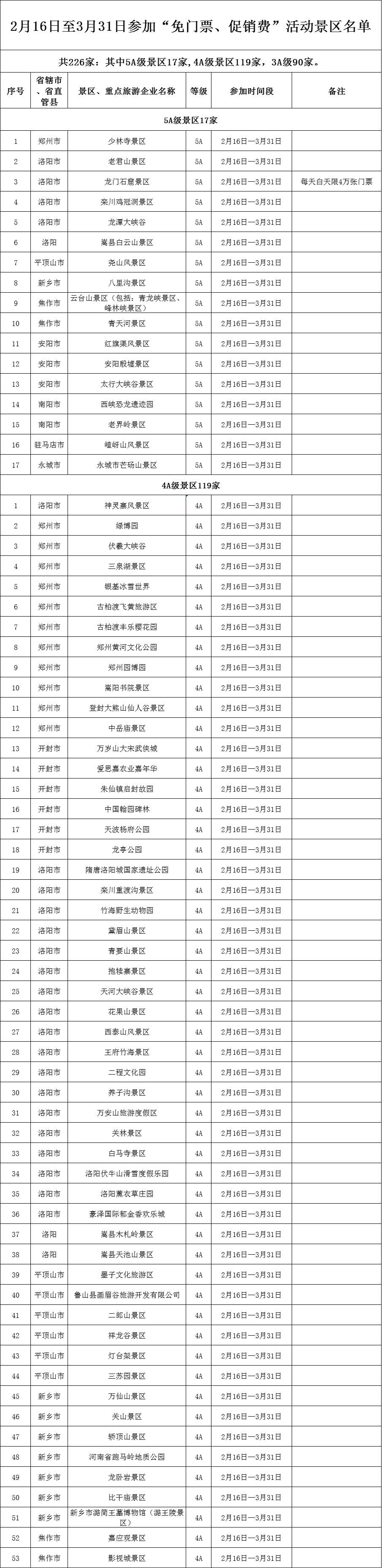 2月15日,记者从河南省政府新闻办新闻发布会上获悉,河南省将开启“豫见春天·惠游老家”活动,2月16日到3月31日,全省226家景区推出首道门票免费活动。