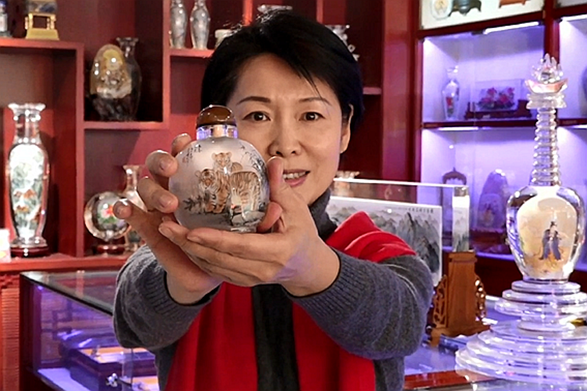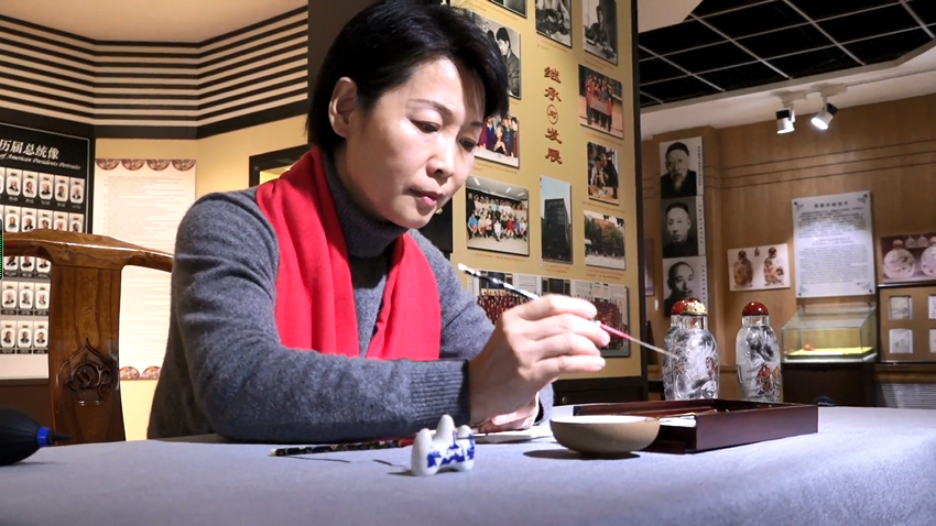 小鼻烟壶蕴含大乾坤。内画的绘制需要在透明或半透明的鼻烟壶内壁,用特制的变形细笔反向绘画,这就要求创作者下笔不仅要稳,更要讲究构图的精准,是个考验技术的活儿,也因此被称为“鬼斧神工”的艺术。2006年,“衡水内画”被列为首批国家级非物质文化遗产名录,衡水内画产业也在传承和创新中不断壮大。