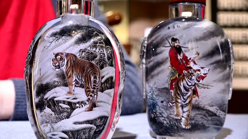 为了迎接这个虎年春节,衡水内画的艺人们创作了一大批老虎题材的内画,萌虎、猛虎、福虎、瑞虎……各种造型的“虎”齐亮相,可谓“虎虎生威”。衡水内画的省级传承人王海丽介绍,“虎”是衡水内画里比较常见的题材,不仅能体现祝福的寓意,其创作技法更能体现衡水内画构图严谨、线描技法丰富、设色协调精润等特点,雅俗共赏。