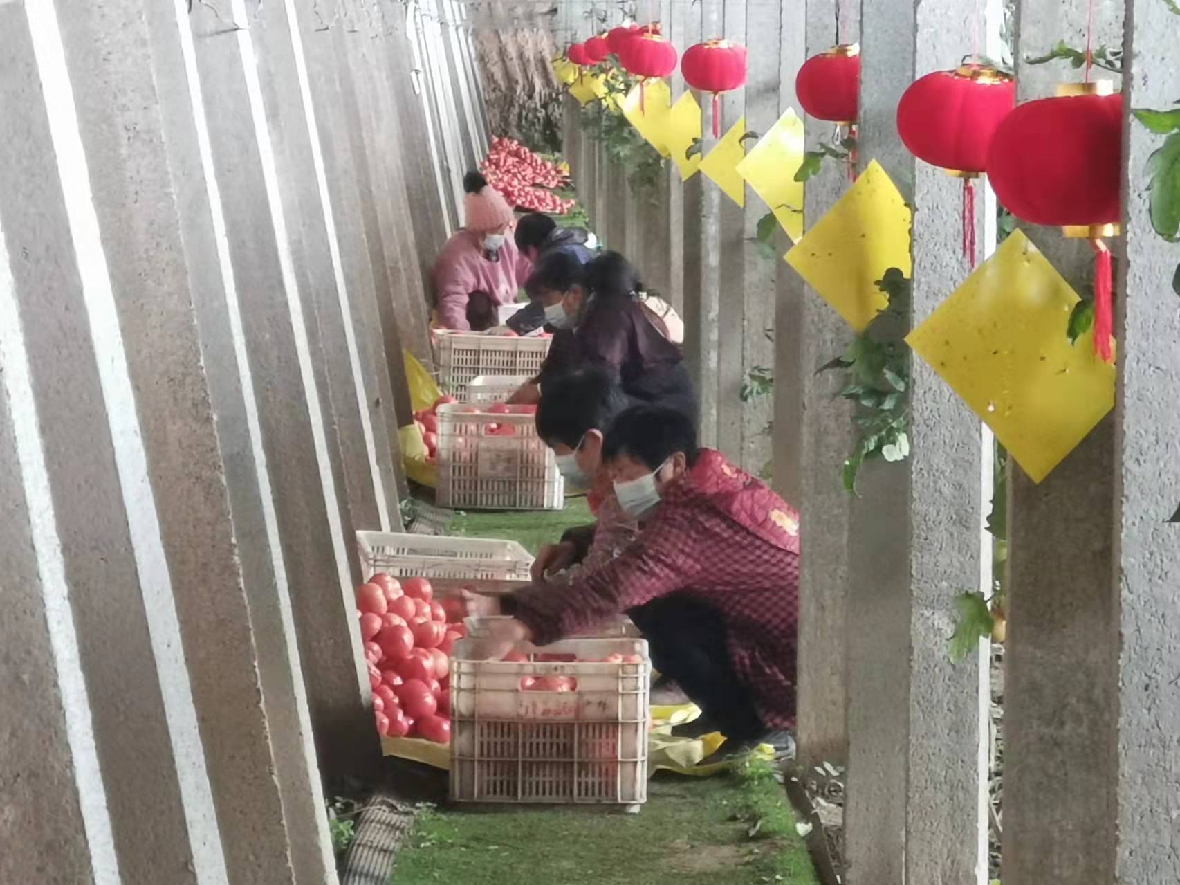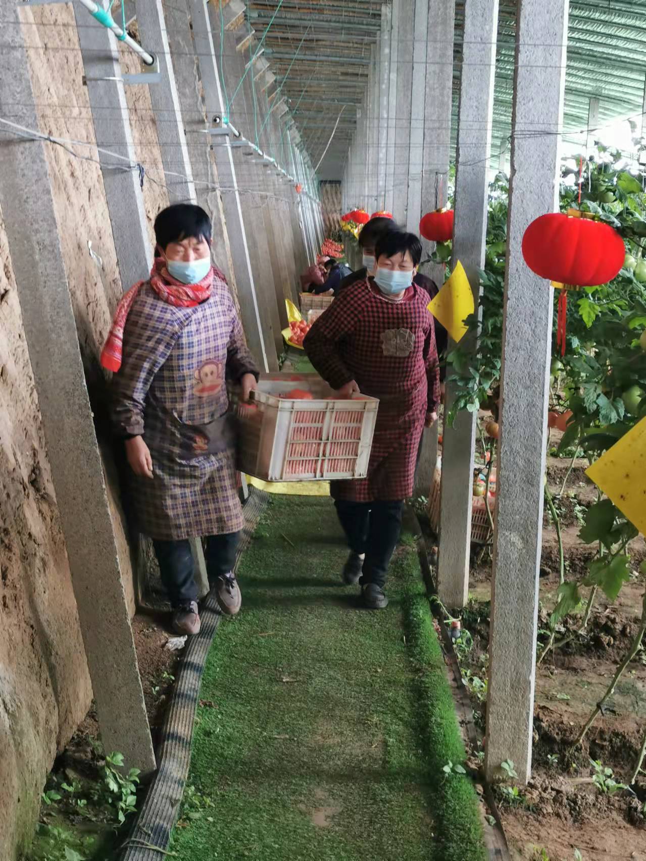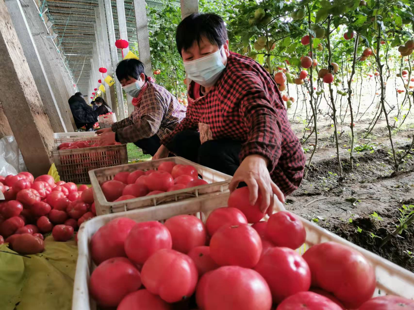 春节期间,位于该镇的河北众城农业发展有限公司日光温室内,工作人员在整理搬运刚刚采摘的西红柿。