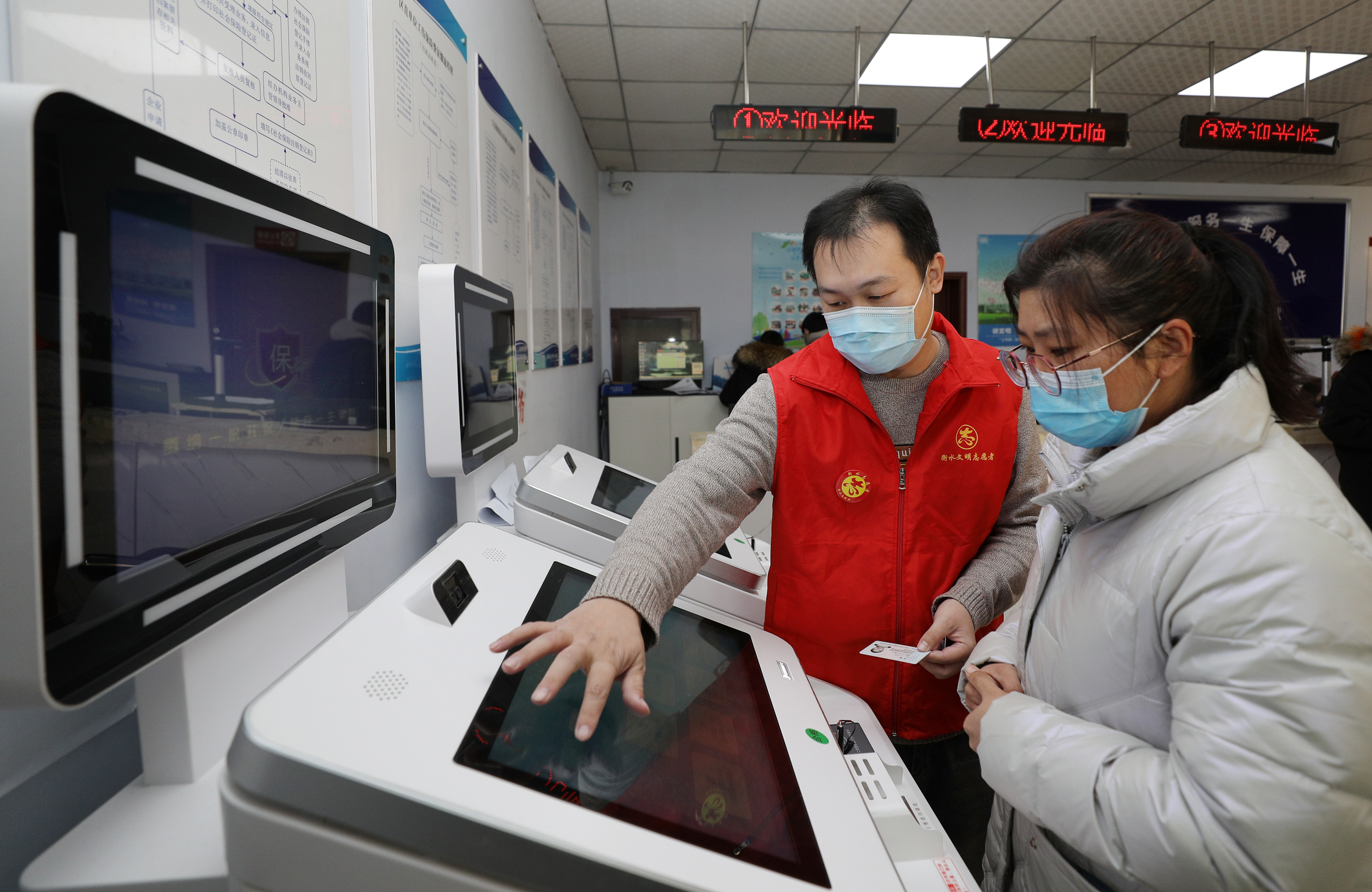2022年2月16日,桃城区人社局工作人员帮助群众查询社保信息。