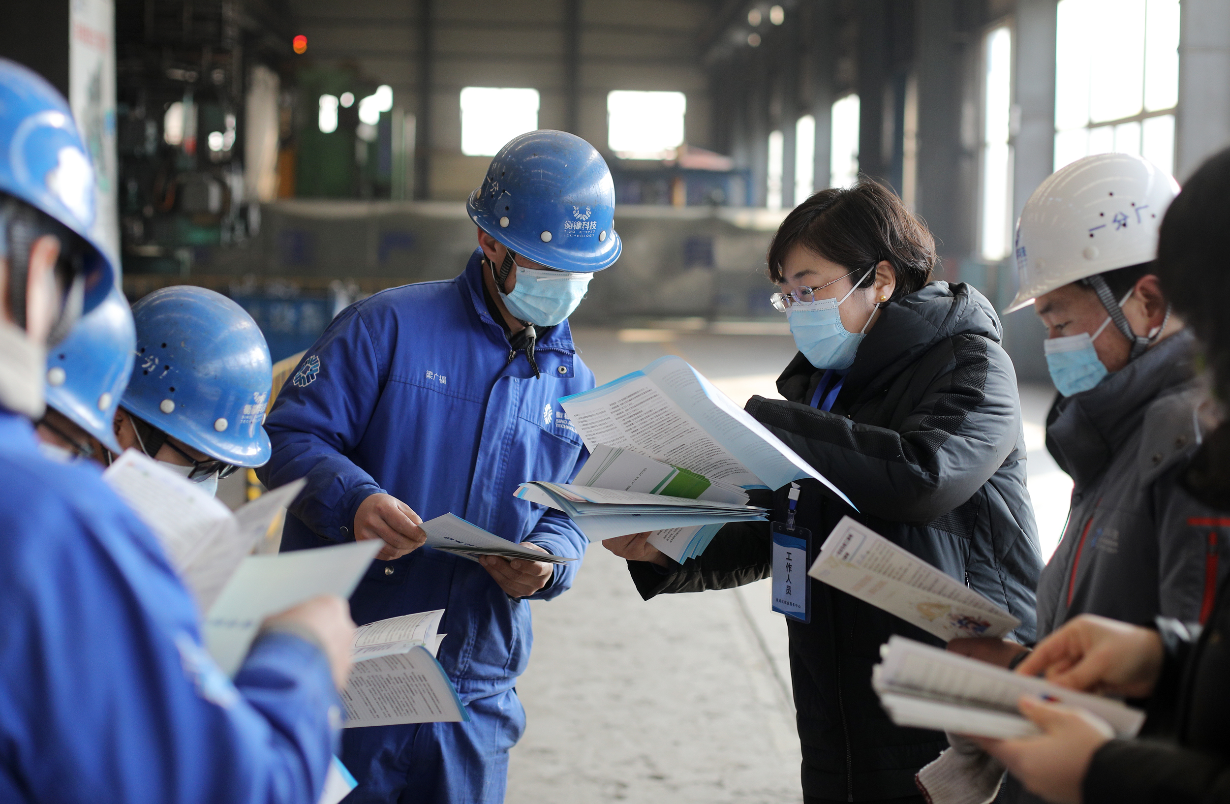 2022年2月16日,桃城区人社局工作人员在衡水京华制管有限公司对企业进行帮扶。