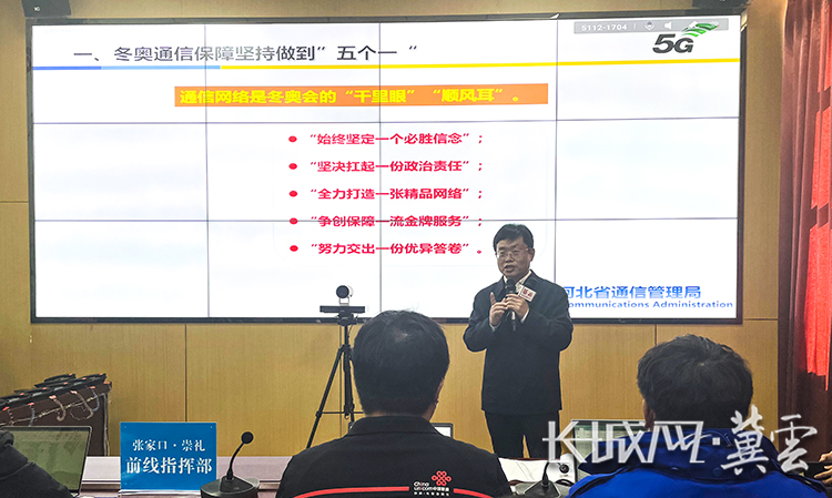 河北省通信管理局党组书记、局长周景耀介绍冬奥期间张家口赛区的通信保障情况。长城网·冀云客户端记者 康紫祎 摄