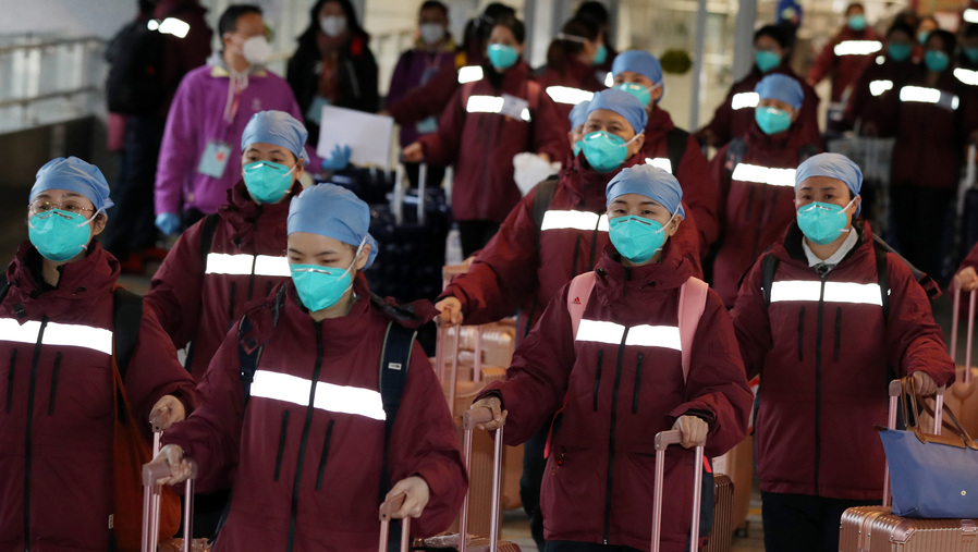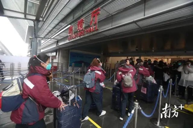 2月19日中午,由中山大学附属第一医院选派的第二批内地援港抗疫医疗防疫工作队队员在广州集结出发。南方+ 石磊 拍摄