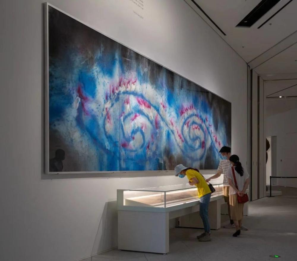 蔡国强作品《银河嬉冰》与故宫馆藏《冰嬉图》复制品 于浦东美术馆展出现场 顾剑亨 摄,蔡工作室提供