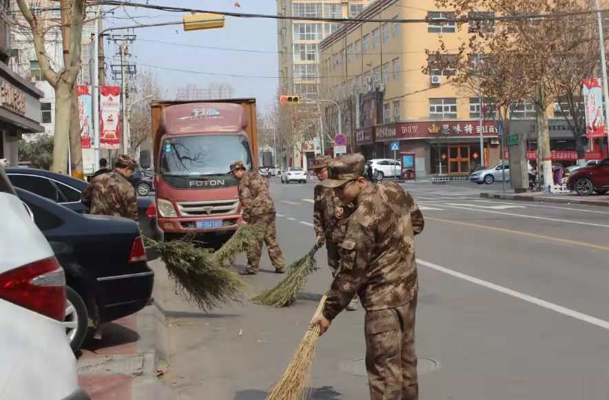 安平县人武部志愿者们走上街头义务劳动。刘田 摄