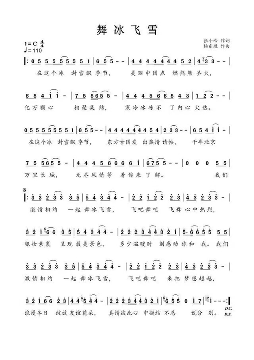 张小岭介绍:“我在创作歌词时就想着,北京与张家口两个城市历史悠久、文化底蕴深厚,这些都必须在歌词中有所体现。”除此之外,他还着重描绘了世界各国人民激情相约、庆祝胜利等温馨场面。歌词立意新颖,既体现了大国情怀和民族自豪感,也体现了中国人民热情好客的传统美德。