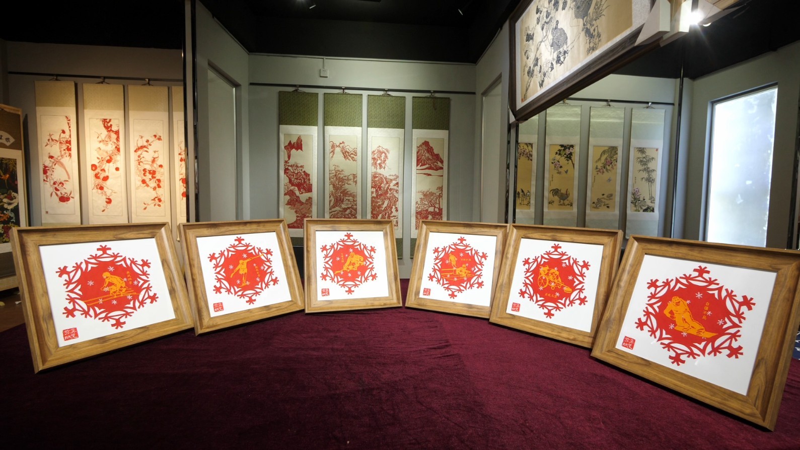 万晓丽创作完成的冬残奥会系列剪纸作品。杜得天 摄