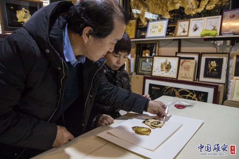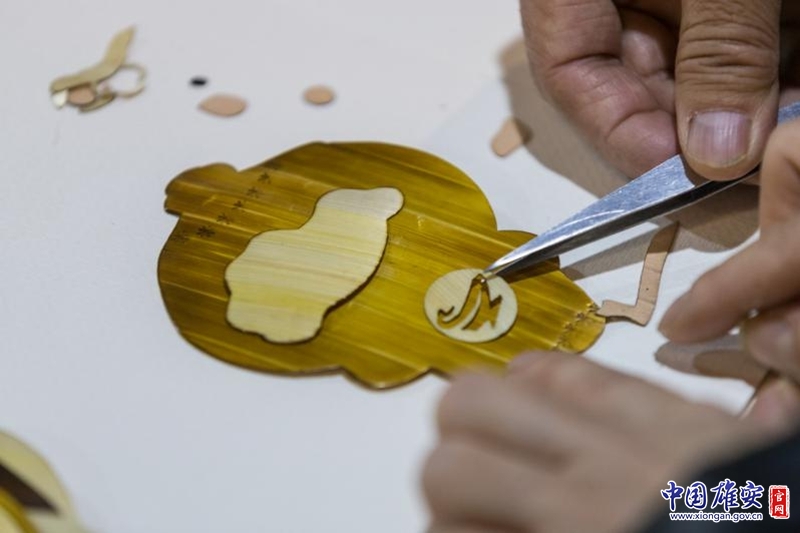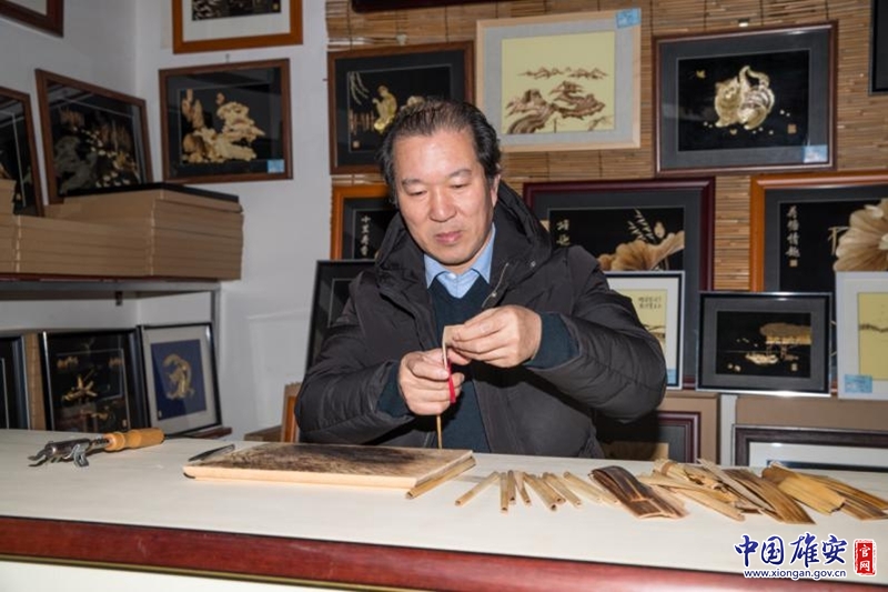 在安新县芦苇画非遗传承人杨丙军手里