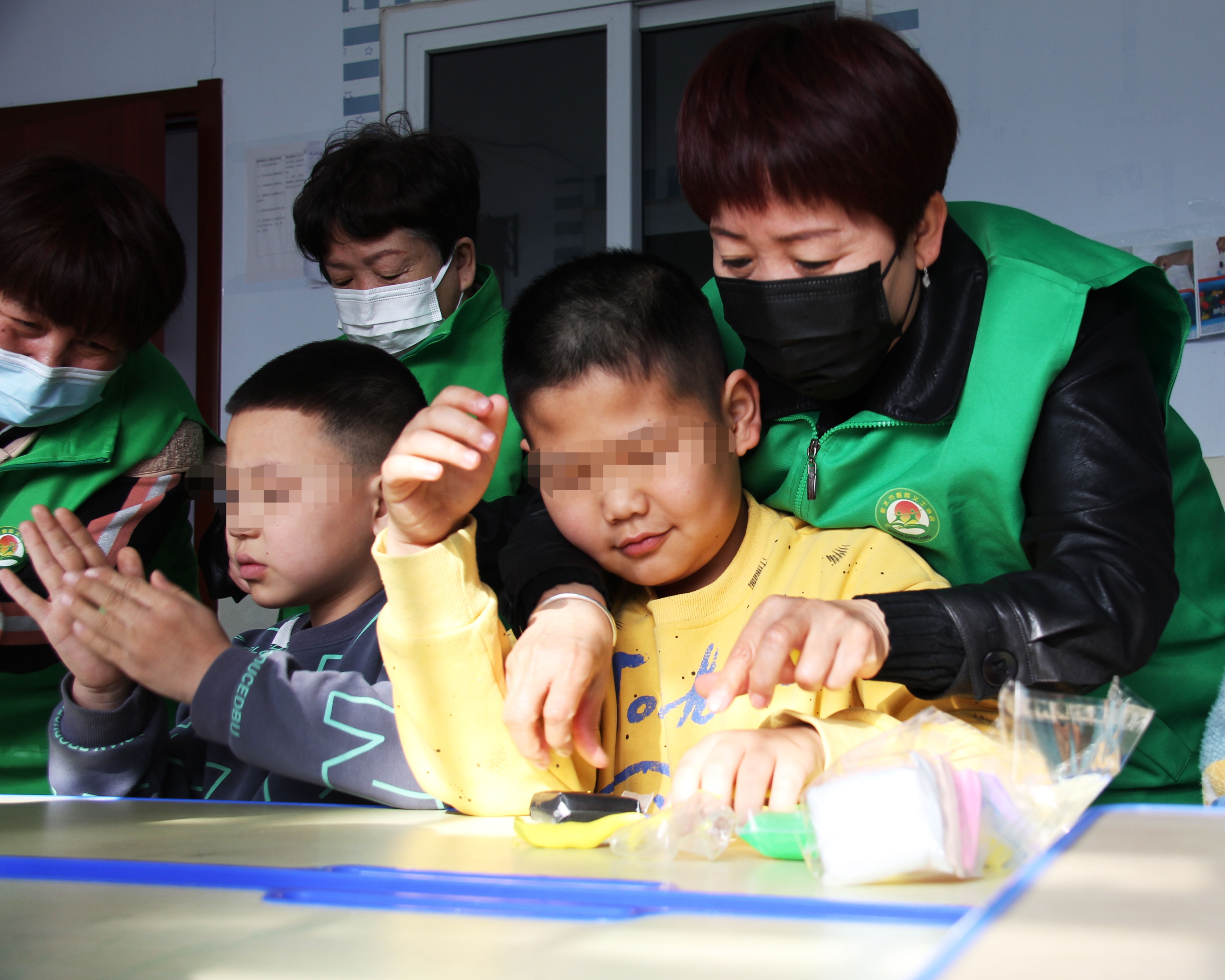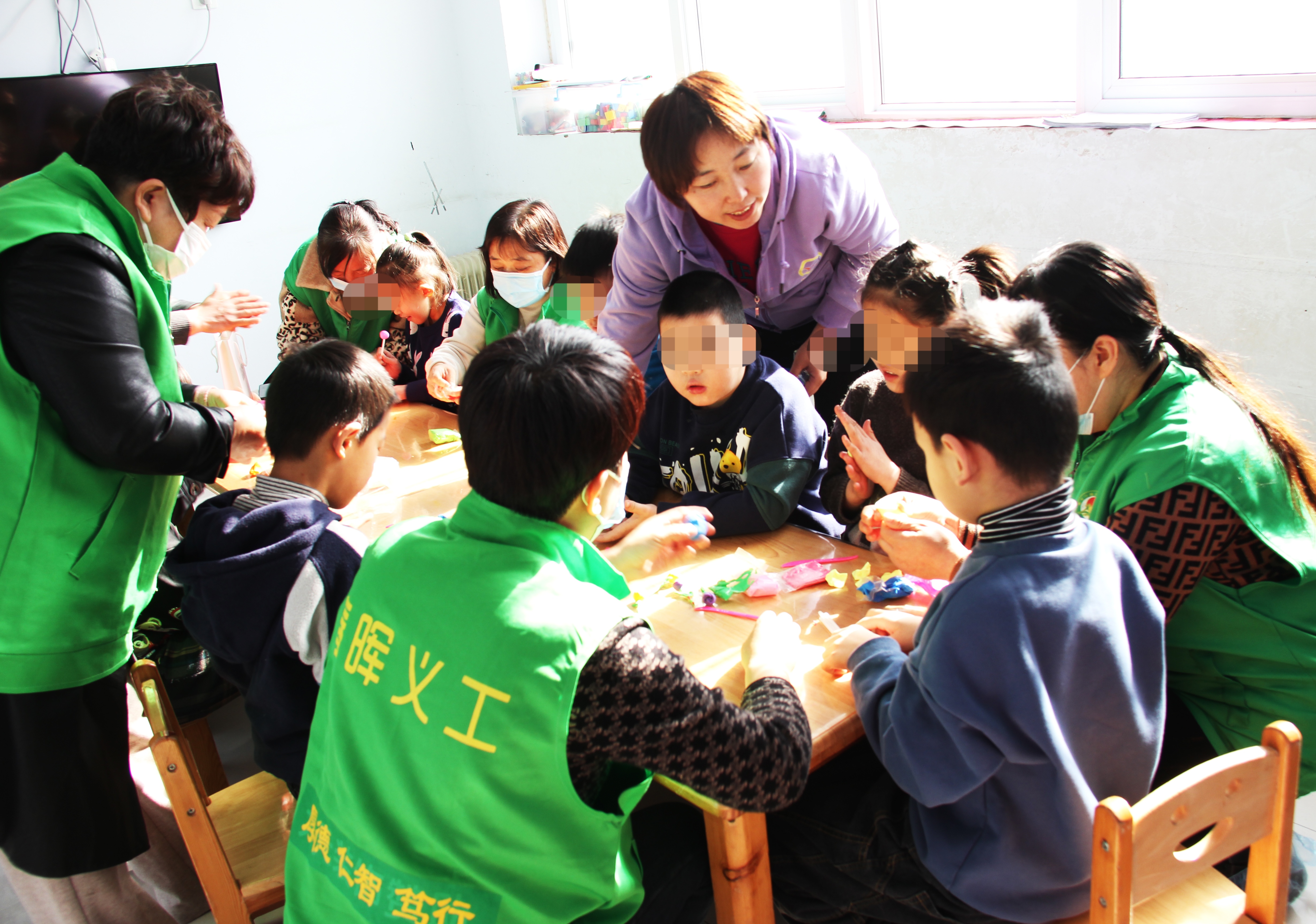 3月8日上午,衡水翰飞儿童能力训练中心学校教室内格外热闹,衡水春晖义工协会志愿者正陪着一群“星星的孩子”认真准备“三八”妇女节礼物,孩子们要亲手做一束玫瑰花送给自己的妈妈。