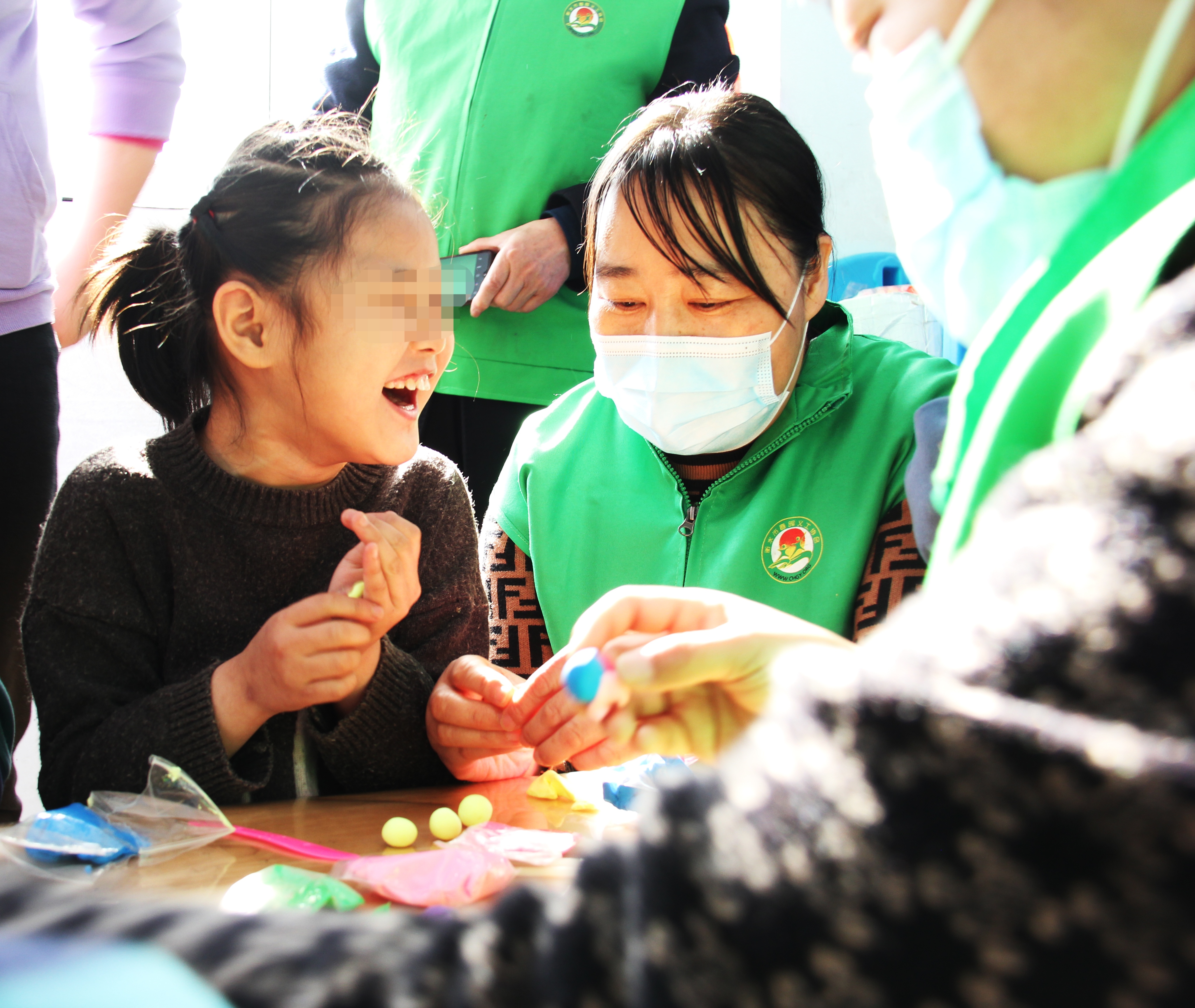 活动中,志愿者除了陪伴孩子们做手工,还跟他们做互动游戏。“相比正常的孩子,这些自闭症的孩子需要更多关心和爱护。因此,他们的妈妈付出得更多,平时真的很辛苦。我们希望能够通过活动表达一下对这些妈妈们的感情,同时也想提供一个机会,让孩子和志愿者多互动、多交流。” 衡水翰飞儿童能力训练中心负责人胡老师表示。