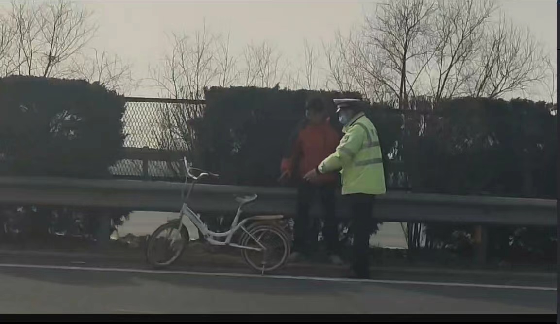 据了解,当天下午15时17分许,高速交警衡水大队指挥中心接连接到报警称:大广高速北京方向1547公里处,一男子骑着自行车在快车道内通行,一会儿顺行一会儿逆行,存在重大安全隐患。