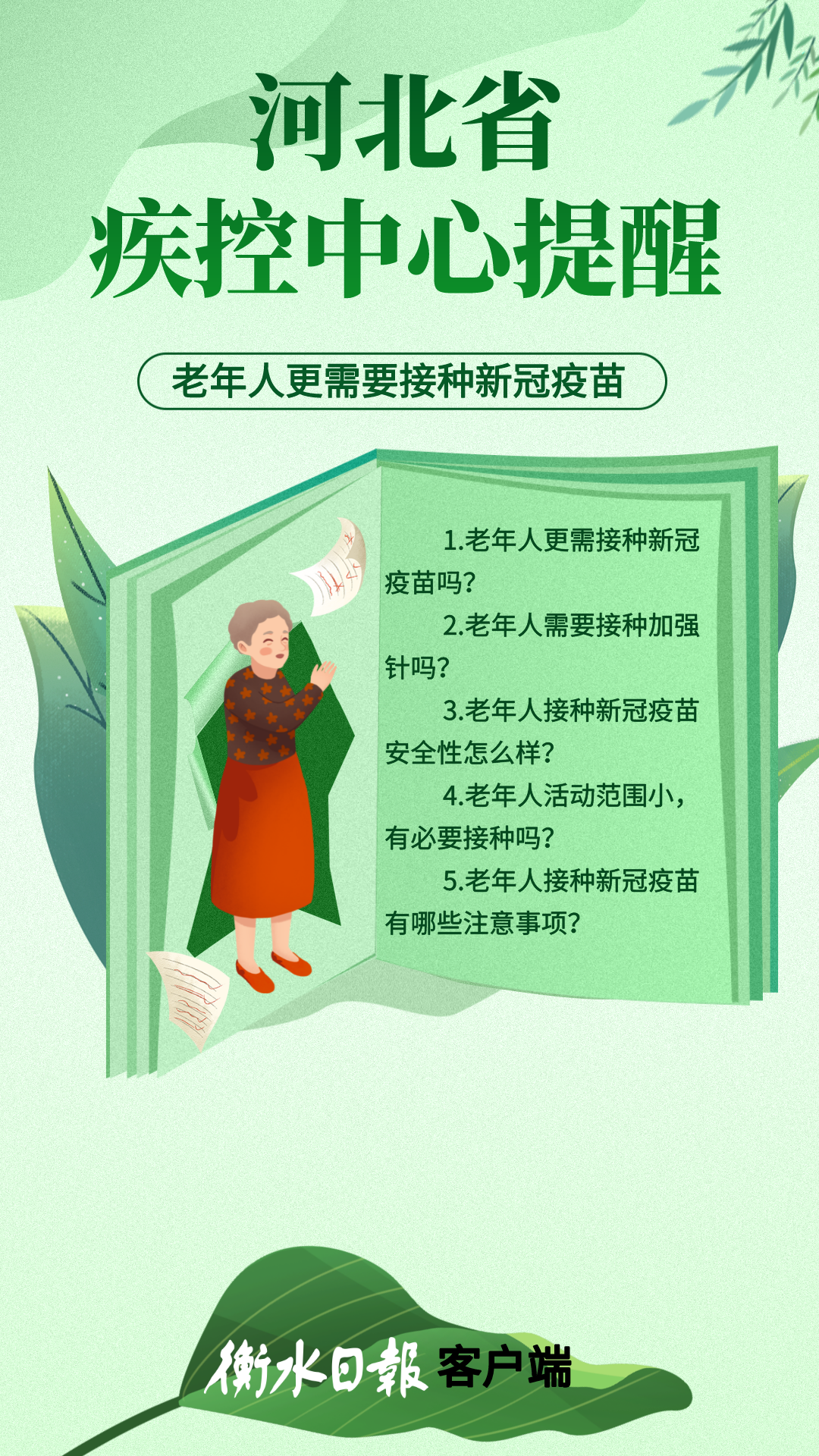 点赞 +1 微博 微信 我要评论 发布 相关推荐 国家卫健委:新冠流行风险依然存在,做好目标人群疫苗接种 舆情 2023-07-13 世卫研究:曾感染新冠并接种疫苗形成的免疫保护可持续一年 疫情动态 2023-01-21 事关老年人疫苗接种!四问四答→ 舆情 2022-12-19 衡水市发通告:进一步加强60岁以上老年人新冠病毒疫苗接种工作 战疫进行时 2022-12-14 80岁以上老年人接种三剂疫苗后死亡风险下降9.3倍至1.5% 舆情 2022-12-08 广州疾控专家:老年人不必怀疑新冠疫苗效果、不必担心不良反应 舆情 2022-12-07 海报 | 8组问答看懂老年人接种新冠疫苗那些事 战疫进行时 2022-12-01 热门 一天 三天 一周 1 【湖城慢直播】踏春寻梅正当时 定格衡水春日里的亮丽风景 2 【新闻发布】 创新招商促落地 深化服务提质效 衡水市持续打造投资兴业热土 3 微改革激发新活力 微创新助力大发展——衡水市扎实推进改革创新工作走深走实 4 我市全方位营造安心舒心消费环境 全年累计使用补贴资金8.3亿元 带动消费61.3亿元 5 【文明旅游反面曝光】春游要文明 赏花莫“摧花” 6 故城:百人太极展风采 全民健身焕新颜 7 故城县开展结核病防治宣传活动 8 衡水发布27个重点招商产业 聚焦县域特色精准发力 9 衡水滏阳路:美人梅盛开 繁花似锦 10 全国学雷锋活动示范点衡水公交18路队:服务不是喊口号,是把乘客没想到的提前想到 1 央媒省媒关注衡水春耕春管有序进行 2 315金融观察|交通银行:2026年以来累计被罚没超2200万元,近30天黑猫投诉平台新增超230条投诉 3 一碗免费热食 暖了衡水的烟火人间 4 深度报道|衡水商超这些年 5 赴春天之约 看杏韵花海 ——枣强县(肖张)第四届杏花文化宣传推介会掠影 6 衡水桃城区城东社区开展“世界水日”主题宣传活动 7 “入企探岗”+“直播带岗” 衡水市“春风行动”线上直播招聘活动创新出彩 8 衡水市各部门各单位有力有序开展树立和践行正确政绩观学习教育 9 河北各地各部门各单位扎实开展树立和践行正确政绩观学习教育 10 【乡村行 看振兴】“老咸菜”里的乡愁——走进武邑县冀京农粮食种植专业合作社 1 拾光纪·马年再会老朋友,上个马年他赠予习近平一匹汗血马 2 “白牌”电动自行车还能骑吗? 衡水晚报“帮办”核实:已全面禁行,违规上路会受罚 3 衡水文旅春日上新 十大场景开启沉浸式春游新体验 4 高职单招考试3月21日开考 衡水9300余名考生将参加考试 5 衡水发布七大主题线路开启春日盛宴 “湖城花事·衡水有约”诚邀京津冀游客共赴花期 6 315金融观察|大地财险罚单密集落地,暴露合规短板 7 探秘气象“大本营” 解锁防灾新密码 饶阳县气象局举办世界气象日科普开放活动 8 【新闻发布】锚定便民利企目标 衡水发布2026年自然资源营商环境新蓝图 9 【新闻发布】聚焦科技赋能 衡水绘就营商环境新图景 10 以鱼养水净河道 2万余尾草鱼苗放流滏阳河衡水市区段 广告 广告 广告 24小时 1 海报系列||早安衡水 2 时政现场说丨与雄安新区共成长 与中国式现代化同发展 3 拾光纪·“我对这里充满感情”,习近平心系燕赵大地 4 近闻·四赴雄安,对“未来之城”再部署 5 沧州银行DIY借记卡上线啦! 6 衡水发布27个重点招商产业 聚焦县域特色精准发力 7 春菜上新 衡水市区超市“鲜”意十足 8 阜城码头镇:运河岸边焕新颜 乡村颜值气质双提升 9 赴气象之约 探“风云变幻” 衡水滨湖志臻学子沉浸式解锁气象奥秘 10 河北衡水:全民健身 燃动湖城 系列之二——舞步翩跹 乐享生活
