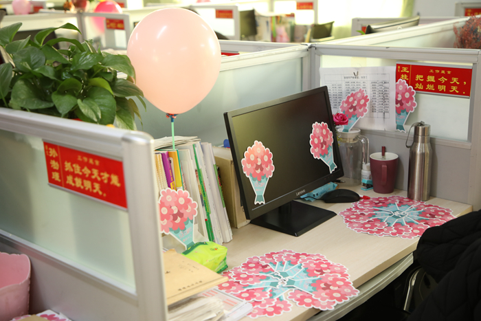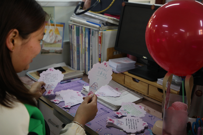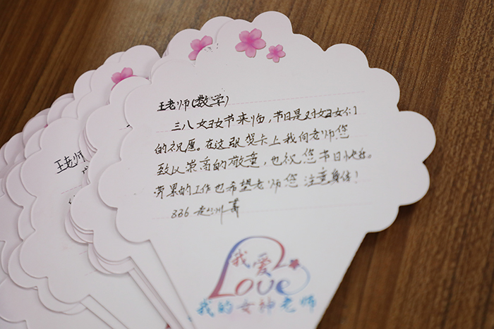 3月8日早晨,老师们走进备课室,首先映入眼帘的是学校精心布置的五颜六色的气球,备感惊喜。同时,学校还为每位女教职工准备了精美的小礼物,承载着学校对女教职工们细致入微的关怀和祝福。学生们也早早为女老师们准备了节日祝福。每位女教师的办公桌上都摆放着造型各异的祝福卡片。“老师,节日快乐!谢谢您!辛苦了!”“老师,您就是我们最亲的人,节日快乐!”一句句暖心的祝福、一张张温馨的卡片,无不让老师们洋溢着幸福的微笑。“我感到非常荣幸,这是学校对我们的关心和鼓励,是学生对我们工作的肯定和支持。作为一名女性,我感到非常骄傲,因为我们在拥有广阔天地与舞台的同时,得到了更多的关爱与尊重。”高三年级女教师陈迅感动地说。在这美丽的日子里,衡水二中的早晨比往常更增添了一份幸福与温馨。