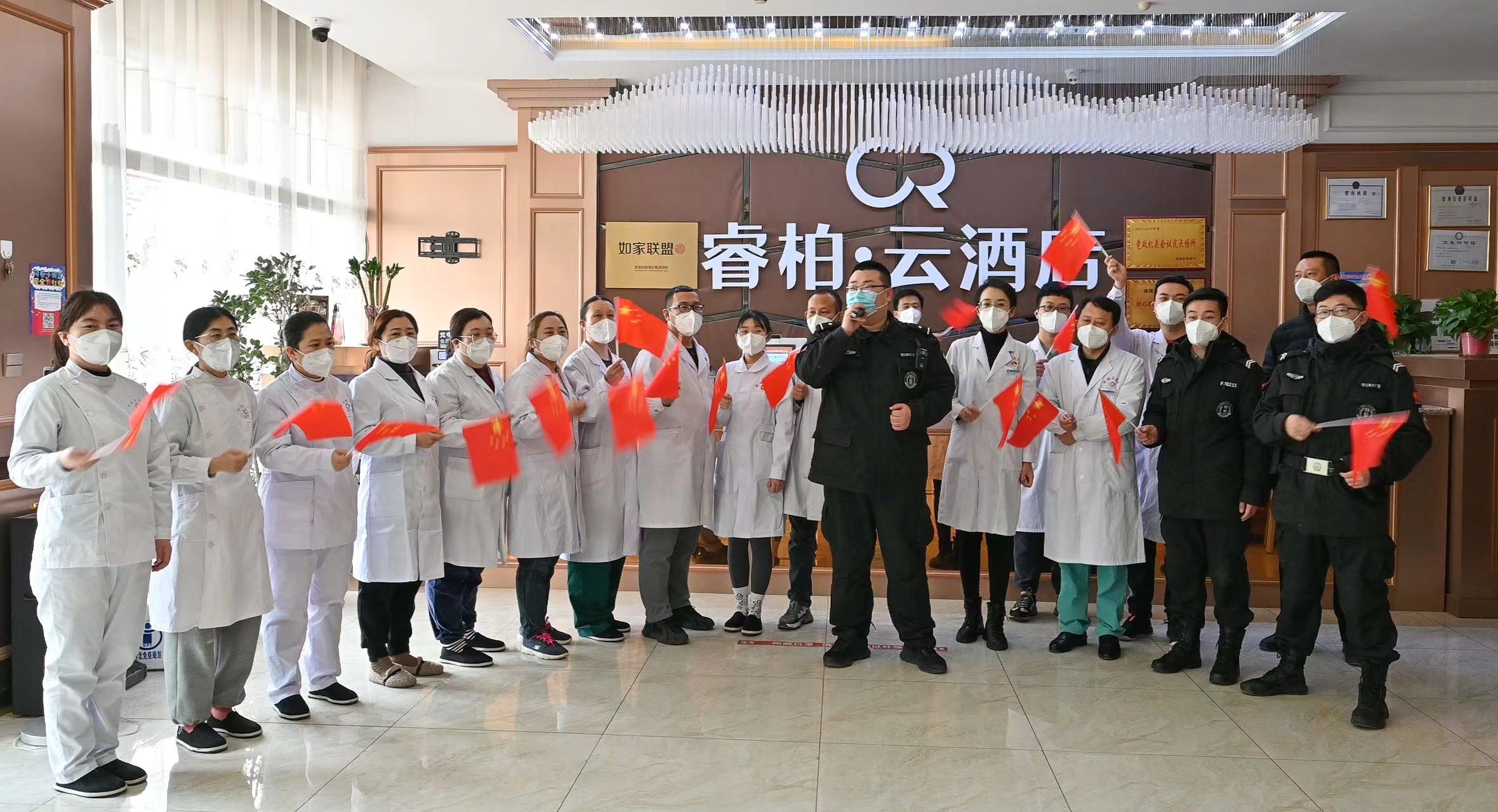 锦尚宾馆隔离点拓展思路丰富精神文化生活。通过观察隔离人员的食物消耗程度和思想情绪波动,对隔离人员的心理状况进行有效判断,针对有高血压、高血糖等慢性病的隔离人员,工作人员每天为他们量血压,测血糖2次,有病情变化的及时上报医师,及时为患病人群送药品,共计30余次。同时,自购图书玩具60余件,分5批次、分年龄阶段分发给8名小朋友,让他们在隔离生活里增添了乐趣。电话联系老年人35次,了解其心理状况、生活情况以及其他需求,教老年人使用智能机,消除他们烦躁情绪;积极与文化馆沟通,为隔离人员带去丰富多彩的文艺演出1次,隔离人员倍感温暖,一扫疫情带来的阴霾。