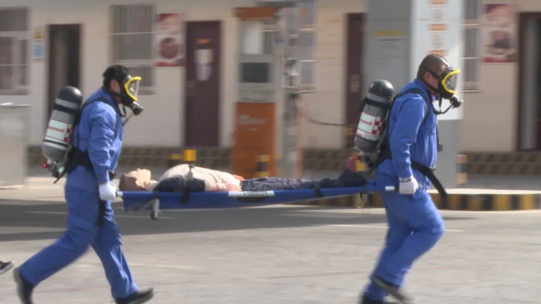 上午10时,演练正式开始。衡水华润燃气有限公司邓庄场站LNG储罐发生泄漏,运行工第一时间发现LNG储罐区气体检测仪发出报警,现场LNG泄漏量较大,造成一人“冻伤昏迷”。公司确认事故后,现场警报响起,随后立即启动应急预案,险情上报至桃城区住房与城乡建设局。桃城区政府立即协调派出消防、急救等各救援力量到达现场,进行警戒疏散、人员救治、救援指导。在确认现场安全后,燃气公司工作人员进行紧急抢修,随后恢复供气。