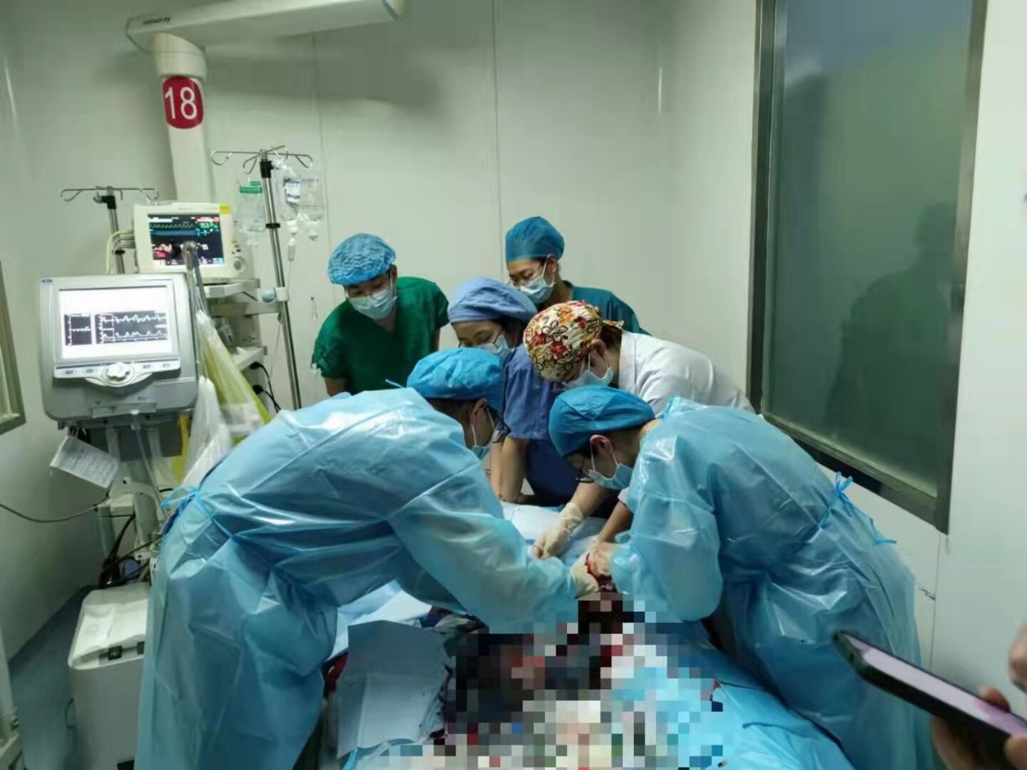 2月27日15时许,医院重症医学科接到气管插管通知,心血管内科一名因急性心肌梗死、心源性休克的中年患者急需气管插管,正在值班的青年主任医师张建军赶到后,发现患者面色紫绀,意识不清,严重喘憋,随之患者出现心跳骤停,张建军会同该科主任医师扈晓霞及值班护士立即开始施行心肺复苏术。曾先后在北京协和医院、阜外华中心血管病医院等地专门进修ECMO技术的张建军,初步评估该患者脑功能以及心肺功能后,认为患者符合上机值。患者家属同意ECMO治疗,河北医科大学硕士研究生导师、重症医学科主任亢宏山教授立即启动ECMO团队相关成员,重症医学科副主任医师刘亚晶、心血管外科副主任羡海英,重症医学科护士长马洪芳、副护士长焦亚平、护士高森等第一时间赶到现场参与救治。