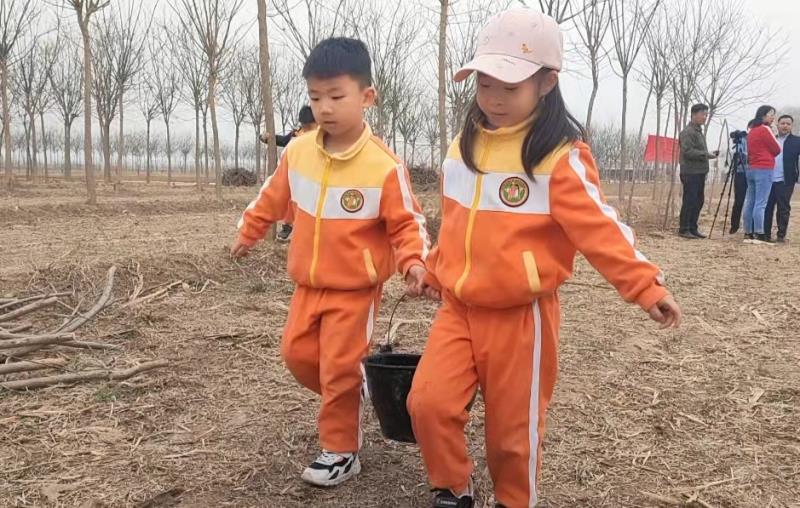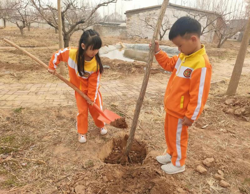 3月11日,衡水东方金子塔学校的80多名孩子和老师沐着春风,来到桃城区邓庄镇留仲村的绮苑农庄,开展了以“种下希望·共同成长”为主题的义务植树活动。