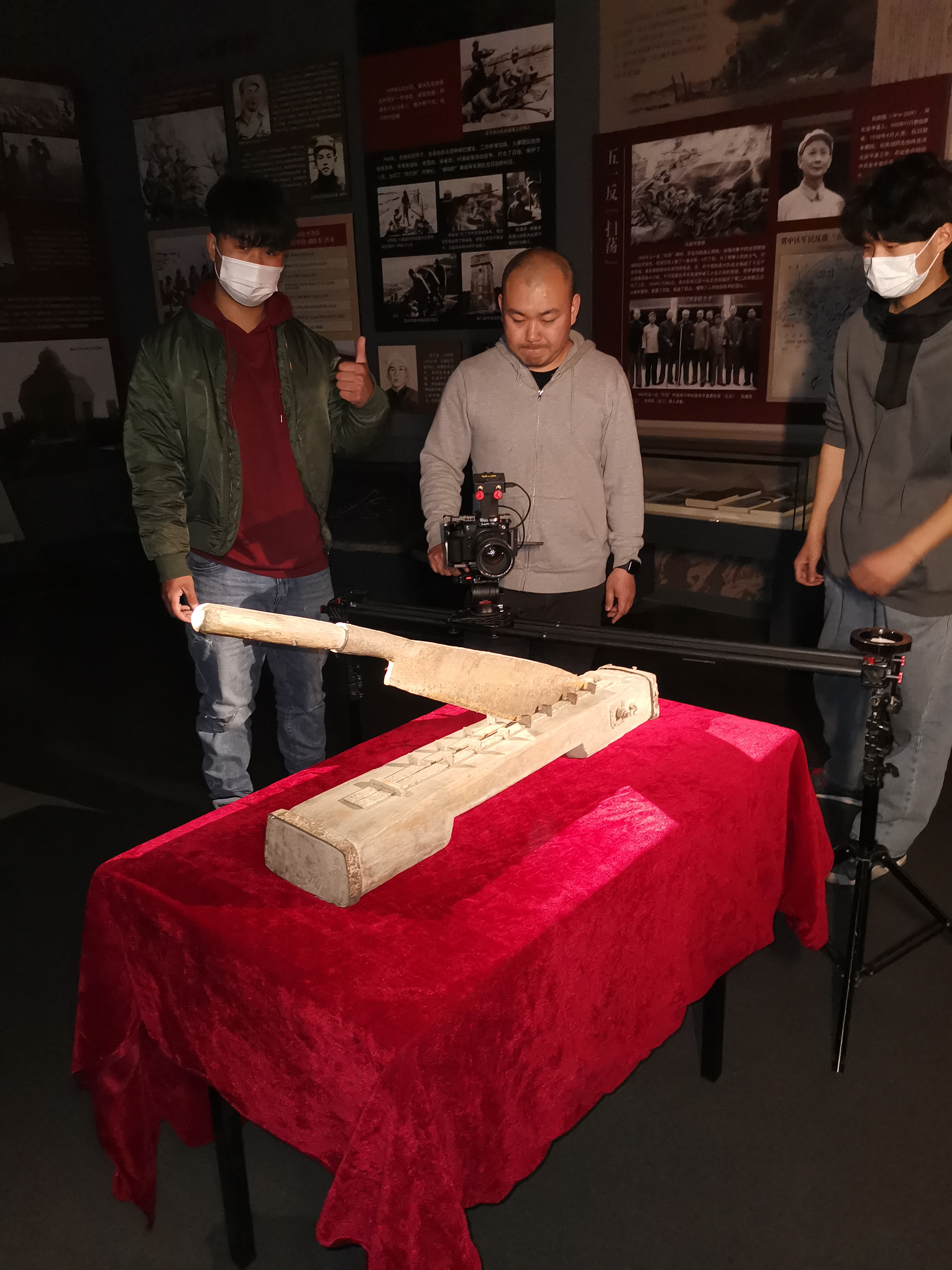 在全国第一个农村党支部纪念馆,摄制组拍摄了冀中骑兵团珍贵革命文物—冀中骑兵团用过的铡刀。