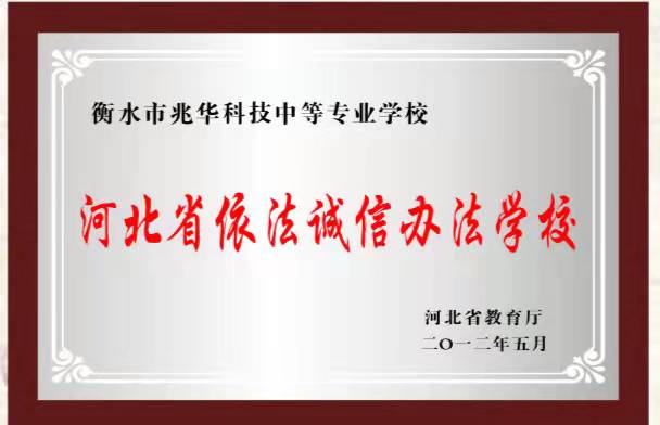 衡水兆华科技中专学校成立于1993年,近30年来始终坚持为国举教、为民办学,为党育人、为国育才。依法办学、以法治校、创建诚信学校。2008年8月新学年、新学期,学校提出了“建设诚信学校,做诚信师生”的口号。实施诚信处室、诚信招生、诚信教学、诚信就业、诚信服务。以法治的体制、法治的程序,诚信的体制、诚信的机制,不断推进学校教育教学各项工作法治化、规范化,不断提高教育教学质量,取得了很好的成效。2012年被河北省教育厅授予其“依法办学诚信学校”称号。