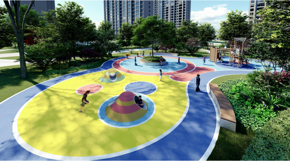 信和荣景园在社区的主入口倾心打造了占地约2000平方米的景观湖。景观湖面水深约30厘米,最大化的保障业主和儿童在游乐时的安全,景观湖的两侧还设计了4种不同形式的亲水观景平台,让业主尽享沿湖美景,同时湖岸设置了多处休憩廊架、凉亭、漫步道等设施,使其具有更好的观景实用性,此外湖水还可以有效地调节小区的空气湿度。沿湖周边的漫步道是人们晨练和晚上散步欣赏夜景的最佳去处。