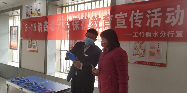为进一步提高金融消费者的权责意识和风险意识,帮助金融消费者自觉远离和抵制非法金融业务活动,3月15日,工行衡水深州支行组织开展了“3·15”消费者权益保护教育宣传活动。