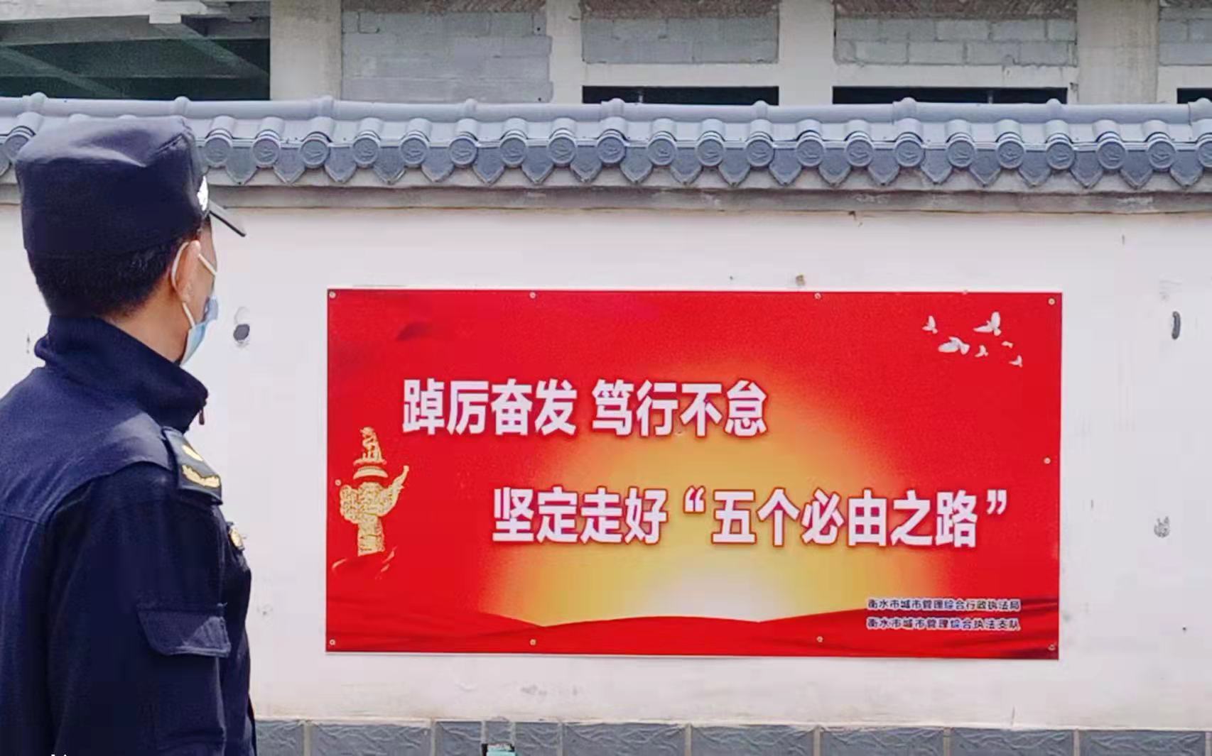 为进一步完善城市功能,今年以来,市城管综合行政执法局综合执法支队按照河北省20项民生工程以及衡水市民生实事工作部署,结合城市改造提升工程,对管辖范围内主干道建筑围挡宣传画面进行优化设置,通过绣花般的细心、耐心、巧心提高精细化水平,绣出城市的品质品牌,不断增强群众获得感、幸福感、安全感。