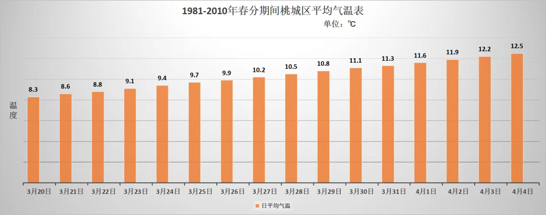 春分的“分”字有三个意义:一是阳光平分在南北半球,二是全球昼夜平分,三是把春季平分。春分后,太阳位置逐渐北移,北半球昼渐长夜渐短。从气象资料来看,桃城区的春分节气,平均气温已经越过零度线,呈上升态势。