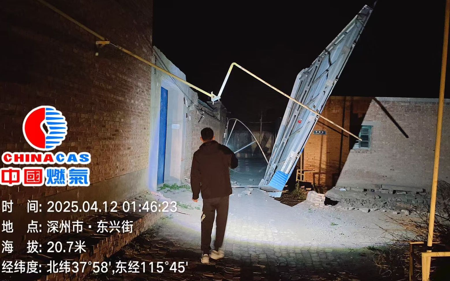 大风致燃气管道险情——深州中燃闻“风”而动 深夜排险保平安