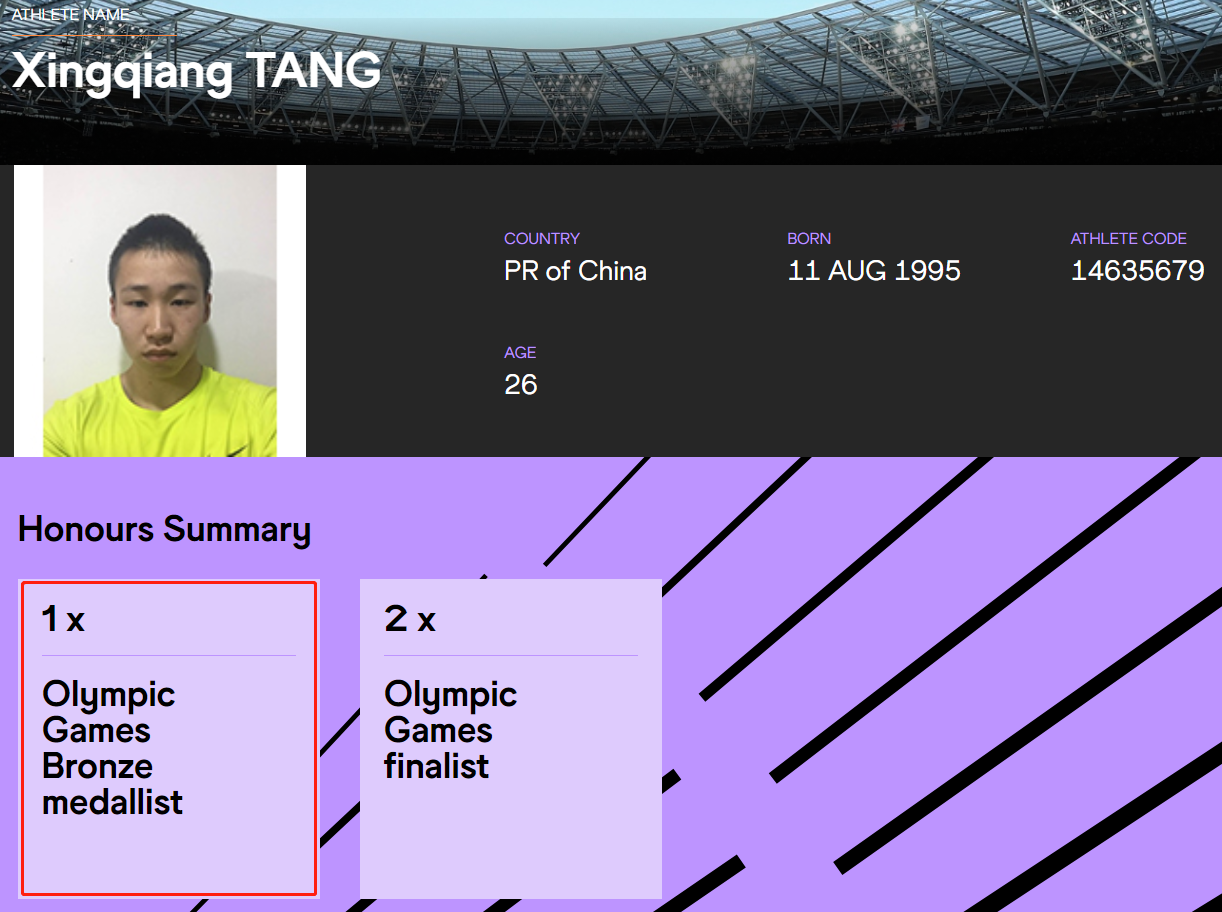 据国际田联官网信息,国际田联的运动员介绍中,苏炳添、谢震业、吴智强、汤星强的资料上都标注了奥运会铜牌。恭喜中国接力队!