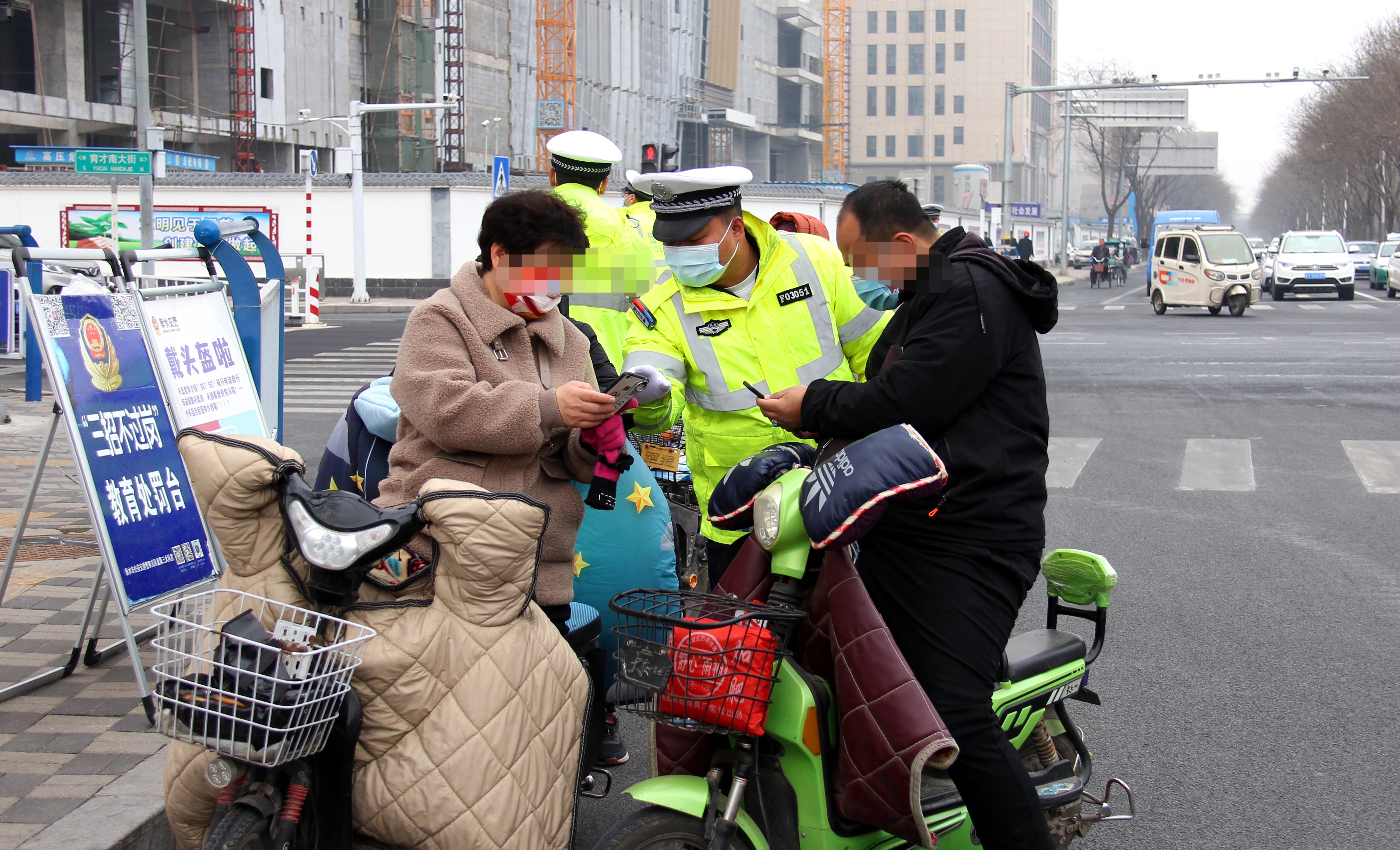 像林女士这样自觉佩戴头盔的市民不在少数,但也有部分市民意识淡薄,没能遵守这一规定,先后被交警拦下。“早晨出门急,忘记戴了……”一男子被拦下,还没等执勤交警赵子越开口,对方就有些懊悔地解释起来。根据“三招不过岗”的管理规定,赵子越对其进行了批评教育,并要求其扫描二维码,进入小程序违法信息页面如实填写登记信息。一名小伙子骑电动车来到路口,看到前方的交警,立刻停下来,从车筐里拿出头盔戴上。一位大妈因未戴头盔被交警拦下后,赶忙调转车头:“我刚出小区门,这就回家去戴头盔”……在现场,记者注意到,交警除了查纠电动车驾乘人员未正确佩戴安全头盔的行为,还针对逆行、闯红灯等其他交通违法行为进行了治理。