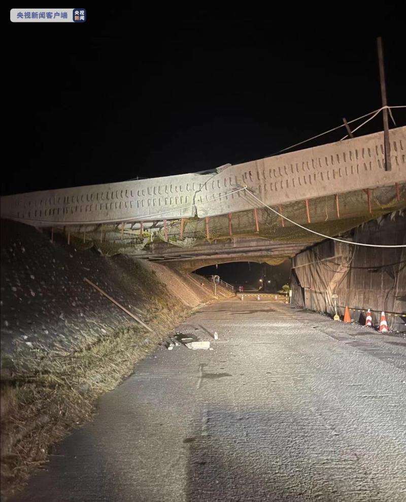 台湾花莲县一桥梁因地震坍塌 没有人员受伤