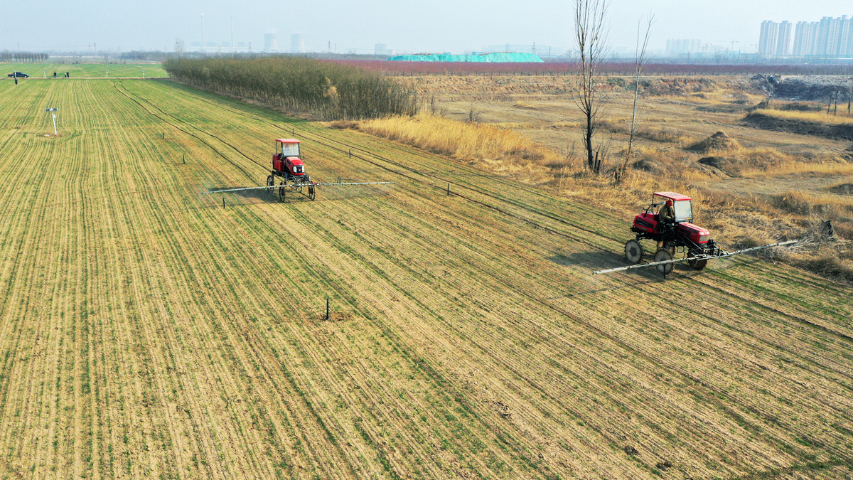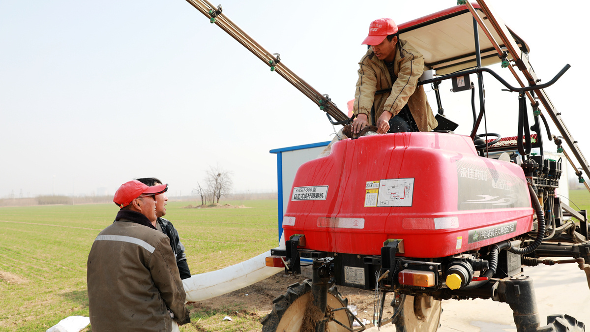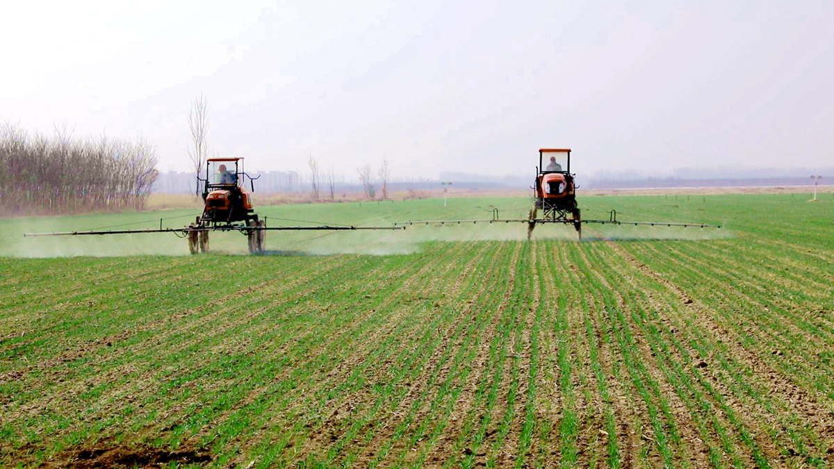 人勤春来早,地勤土生金。眼下正是小麦生长的黄金期,近日,记者走进衡水市桃城区郑家河沿镇李空城村,麦田里已是满目青绿,两辆满载农药的自走式喷杆喷雾机来回穿梭,给小麦喷洒杀虫剂、杀菌剂和叶面肥。