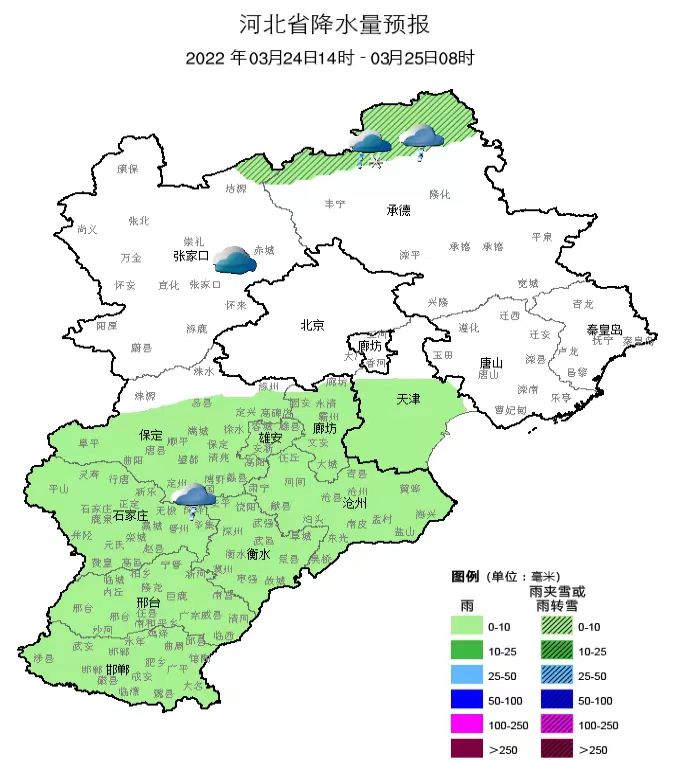 具体天气预报为:3月24日夜间,阴有零星小雨,偏南风2~3级,最低气温7~9℃;3月25日,白天阴,中南部有小雨,或零星小雨,北风3~4级,阵风5~6级,夜间多云转晴,气温:15到5℃;3月26日,晴间多云,气温:20到5℃;3月27日,晴间多云,气温:15到5℃;3月28日,多云转阴,气温:17到8℃;3月29日,小雨转阴,气温:12到6℃;3月30日,多云转晴,气温:12到4℃;3月31日,晴间多云,气温:15到6℃。