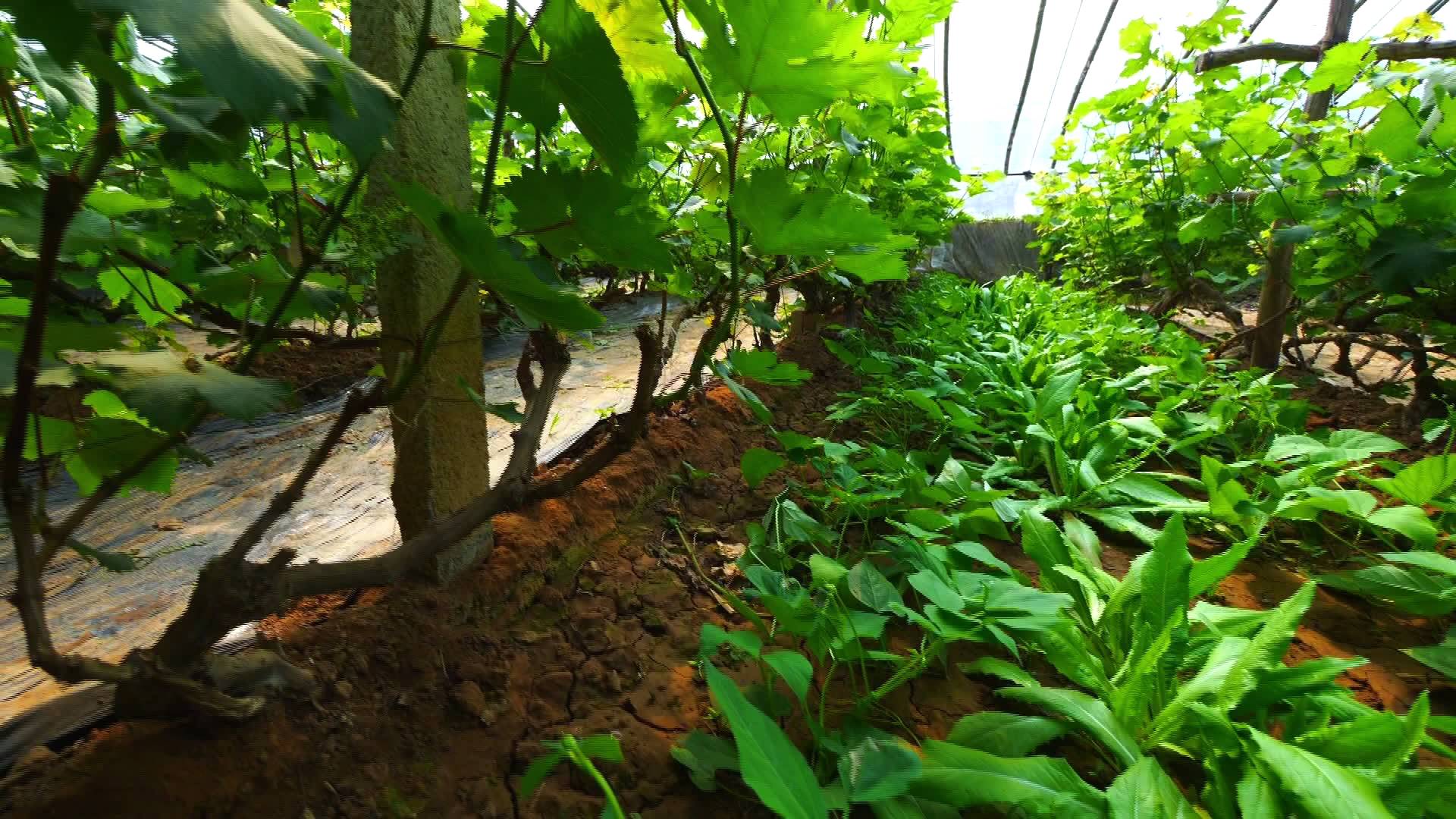 基地负责人赵海霞:“种植的葡萄还没有挂果盛产的时候,在这个期间可以种3-4茬儿青菜,还可以再种一茬西瓜,这些收入一年在6万左右。咱引进了新品种、新技术,葡萄能一年收两茬,总共收入一年在10万元以上,收益比较客观的。”