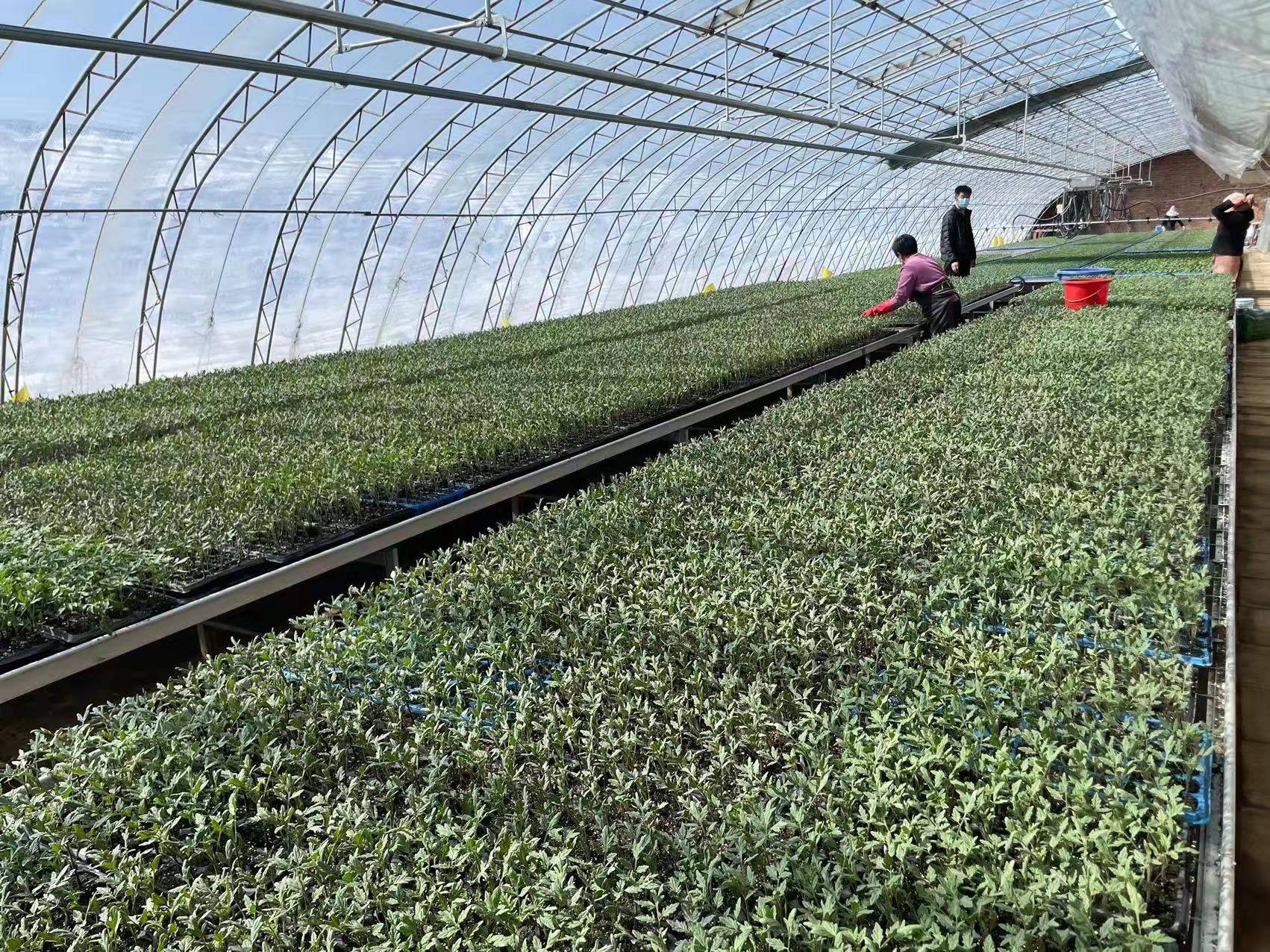 在承德滦平新硕农业发展有限公司农业种植基地内,工人们戴着口罩,正在大棚内栽植番茄、黄瓜、青椒等小苗。面对当前疫情形势,基地在做好春耕播种的同时,做好了全员的防疫工作。