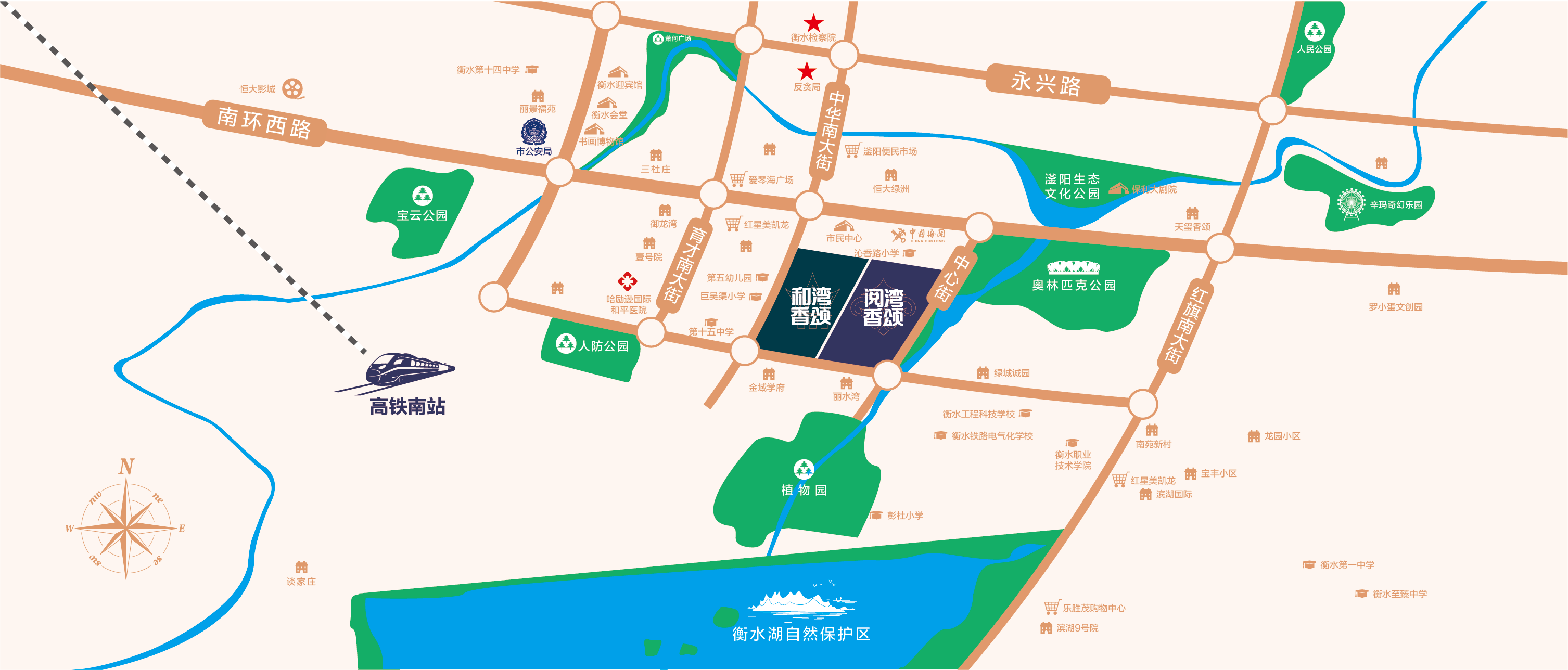 衡水市政府重点打造的高铁南站,距离项目3公里,建成后衡水将正式融入北京1小时经济圈,为后期项目业主出行提供了最佳方案。项目西侧为学区,包括巨吴渠小学、第15中学、桃城区第五幼儿园,再加上项目内部的幼儿园,北侧的沁香路小学,可以说是教育资源非常丰富。